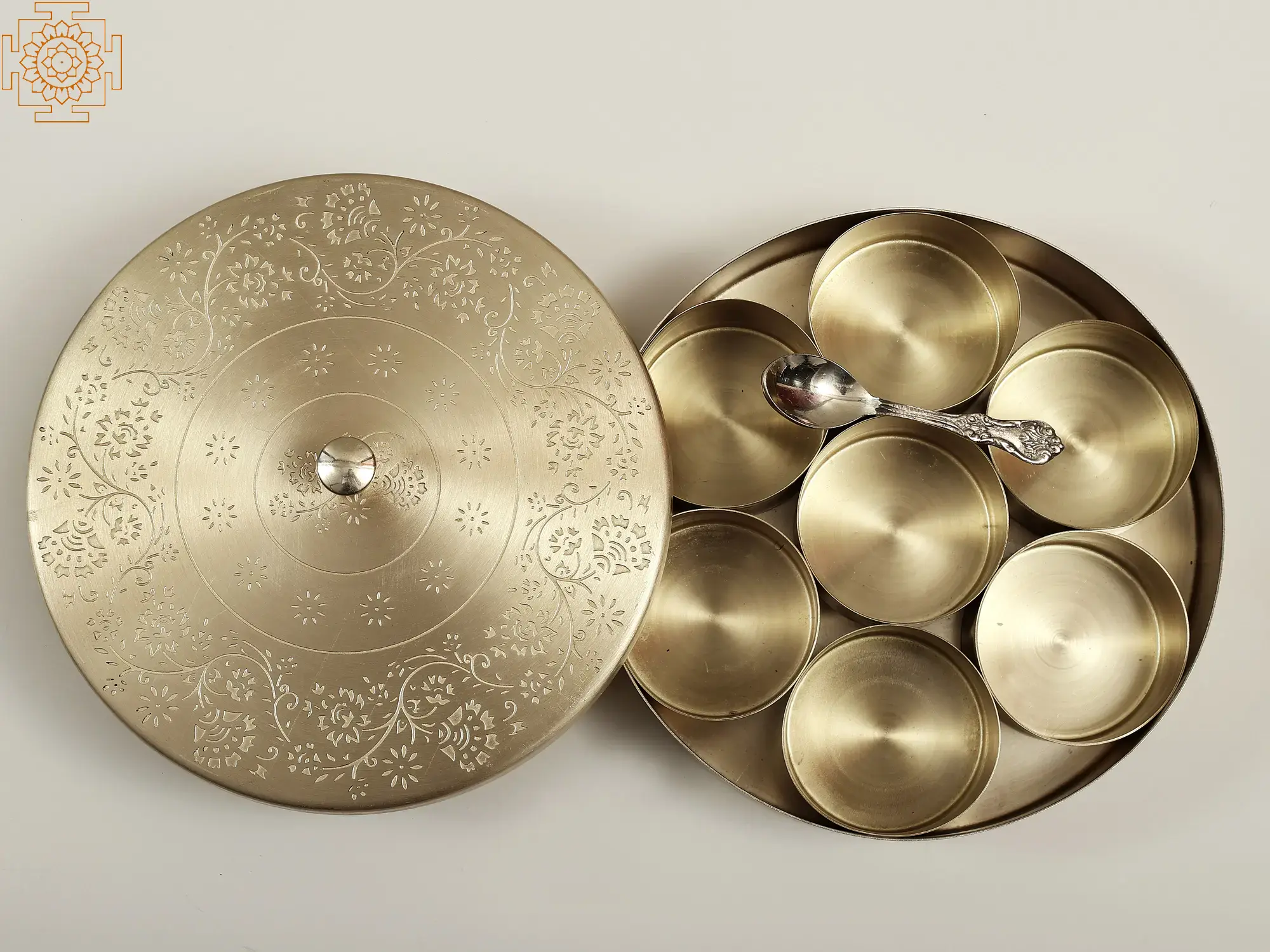 In Ayurveda, spices are considered more than just flavour enhancers; they are valued for their medicinal properties and their ability to balance the doshas (Vata, Pitta, and Kapha), which are the fundamental energies governing physiological and psychological functions. Deriving from the same ideas - this masaldani is not just a storage container but an embodiment of culinary heritage and design elegance. Each compartment, carefully crafted, becomes a vessel for the unique scents and flavours that define your culinary creations, adding value to your kitchen beautifully.