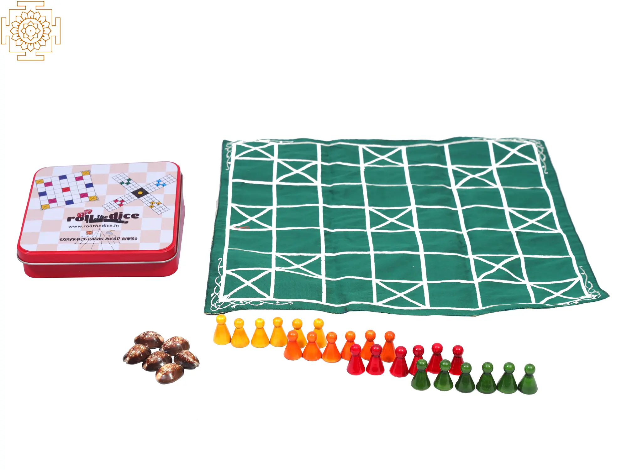 Encased in a sturdy and aesthetically pleasing tin box, this Chowka Bara set is designed for longevity. The tin provides excellent protection for the mat and pieces, ensuring that this game can be passed down through generations, continuing to bring joy and engagement to new players. Its compact nature makes it ideal for travel, allowing you to bring the fun of traditional board games wherever you go, from family vacations to weekend getaways. Bring a piece of cultural heritage into your home and discover the enduring appeal of this classic game.