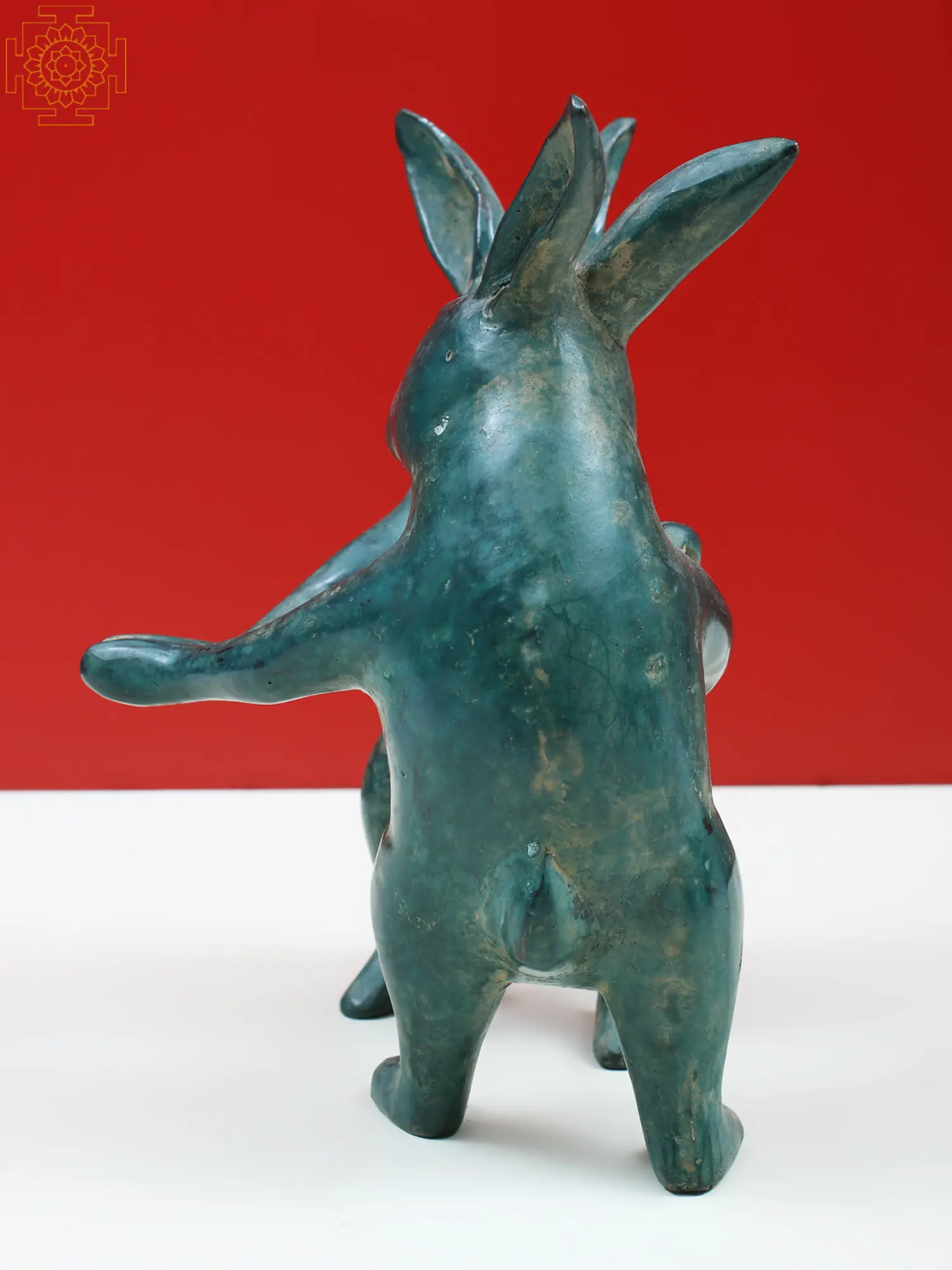 This Small Brass It Takes Two to Tango Dancing Rabbit statue is inspired by the poem Choestoe (The Dance of the Rabbits) written by Byron Herbert Reece. In this poem, the poet reimagines the place Choestoe where the Rabbits must have danced. Here the poet is trying to reimagine the place in the times when it was blessed with flora and fauna. This beautiful and emotional piece of art is a tribute to the motherland and its creations. It is painted in a dark green patina tint which is artificially made to increase the look of the piece. The Brass statue apart from being a reminder of the beauty of nature is also a cute piece that will be admired by children.