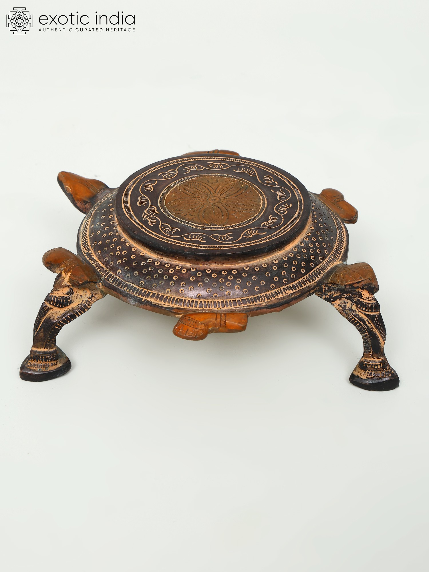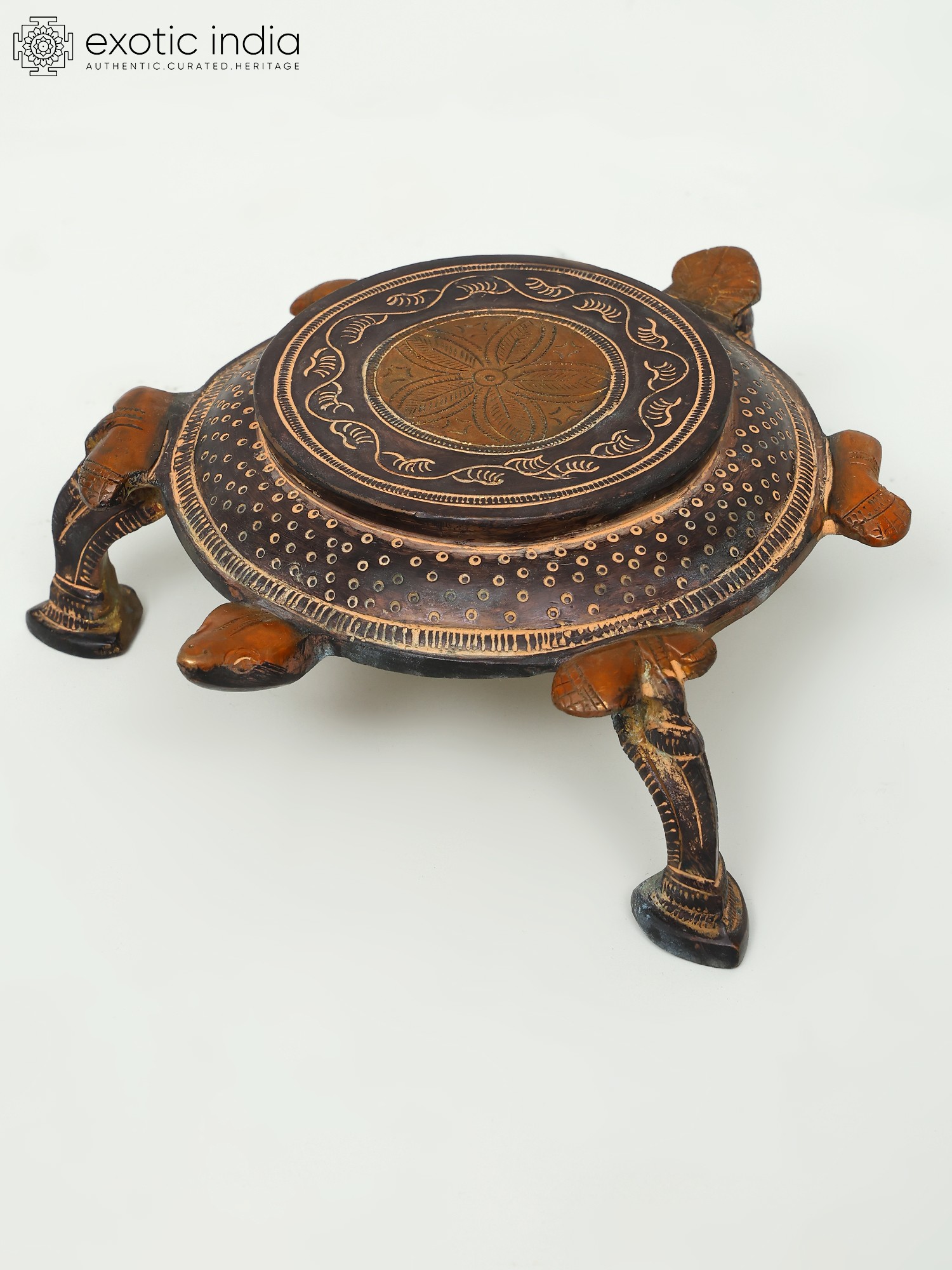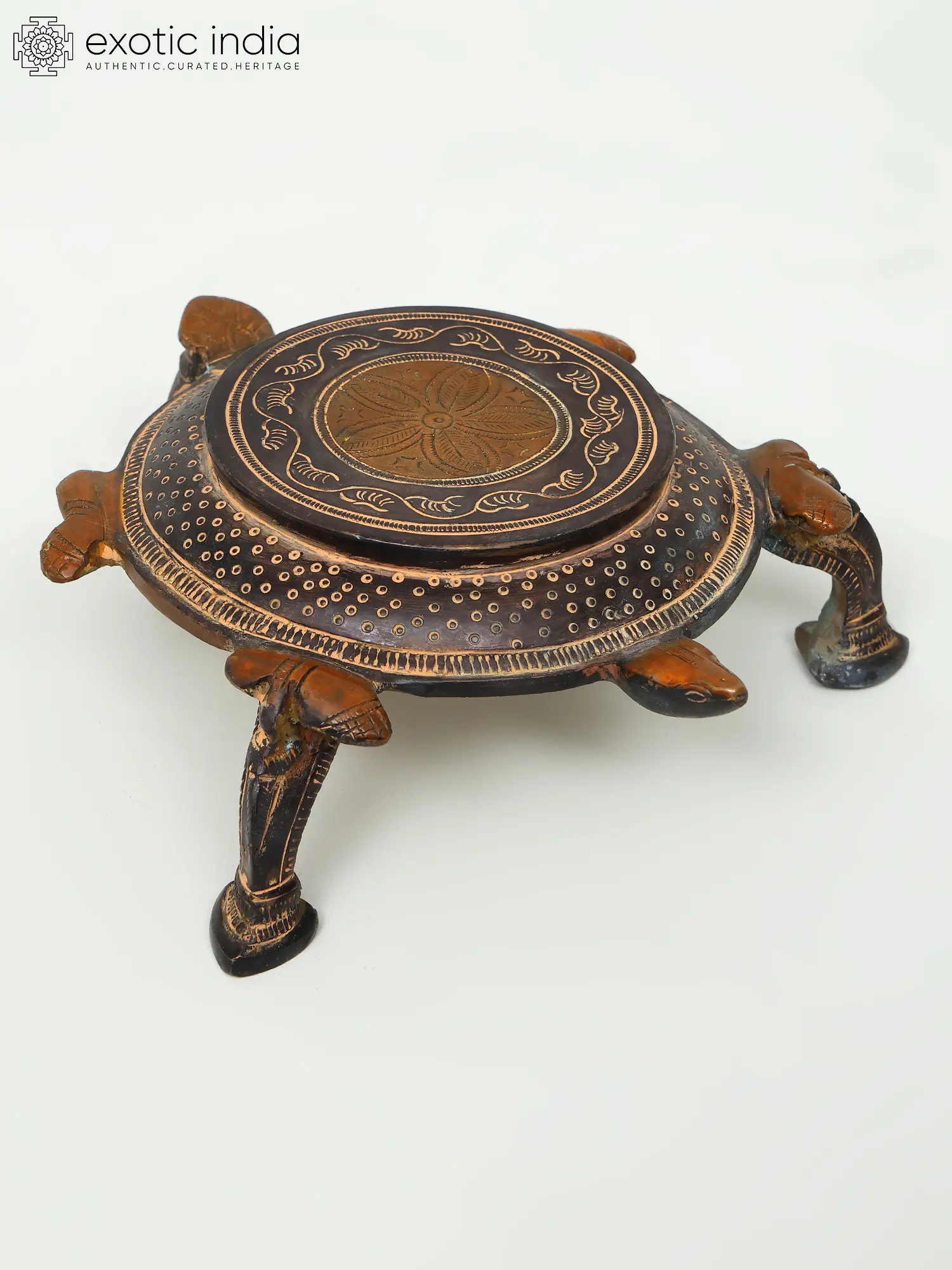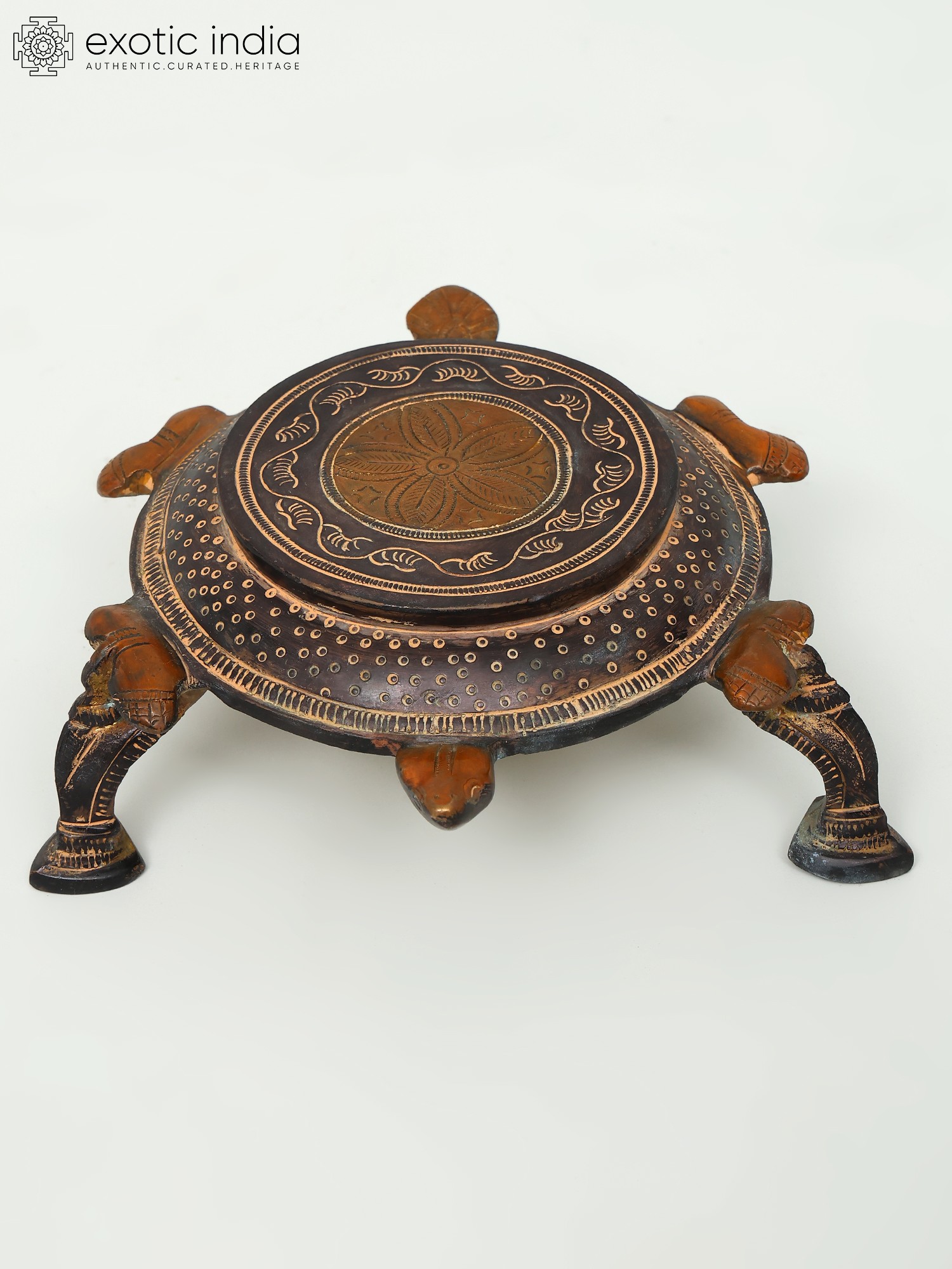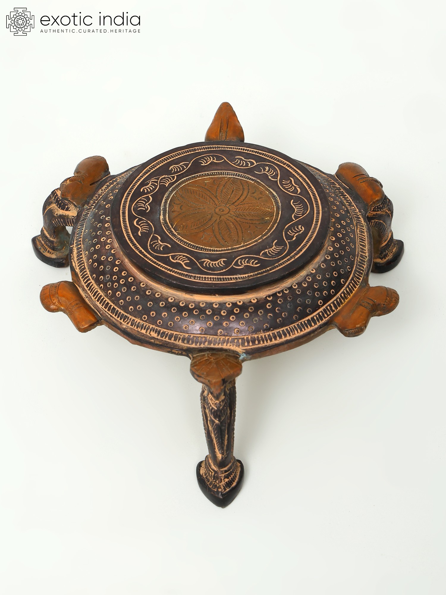 19" Pentagon Shaped Brass Pedestal (Chowki) with Dangling Bells