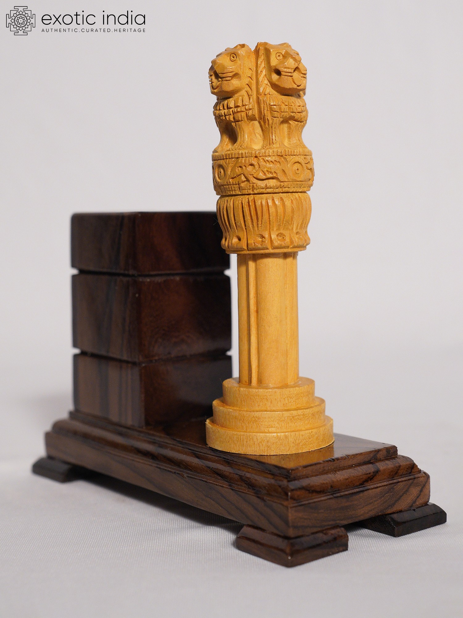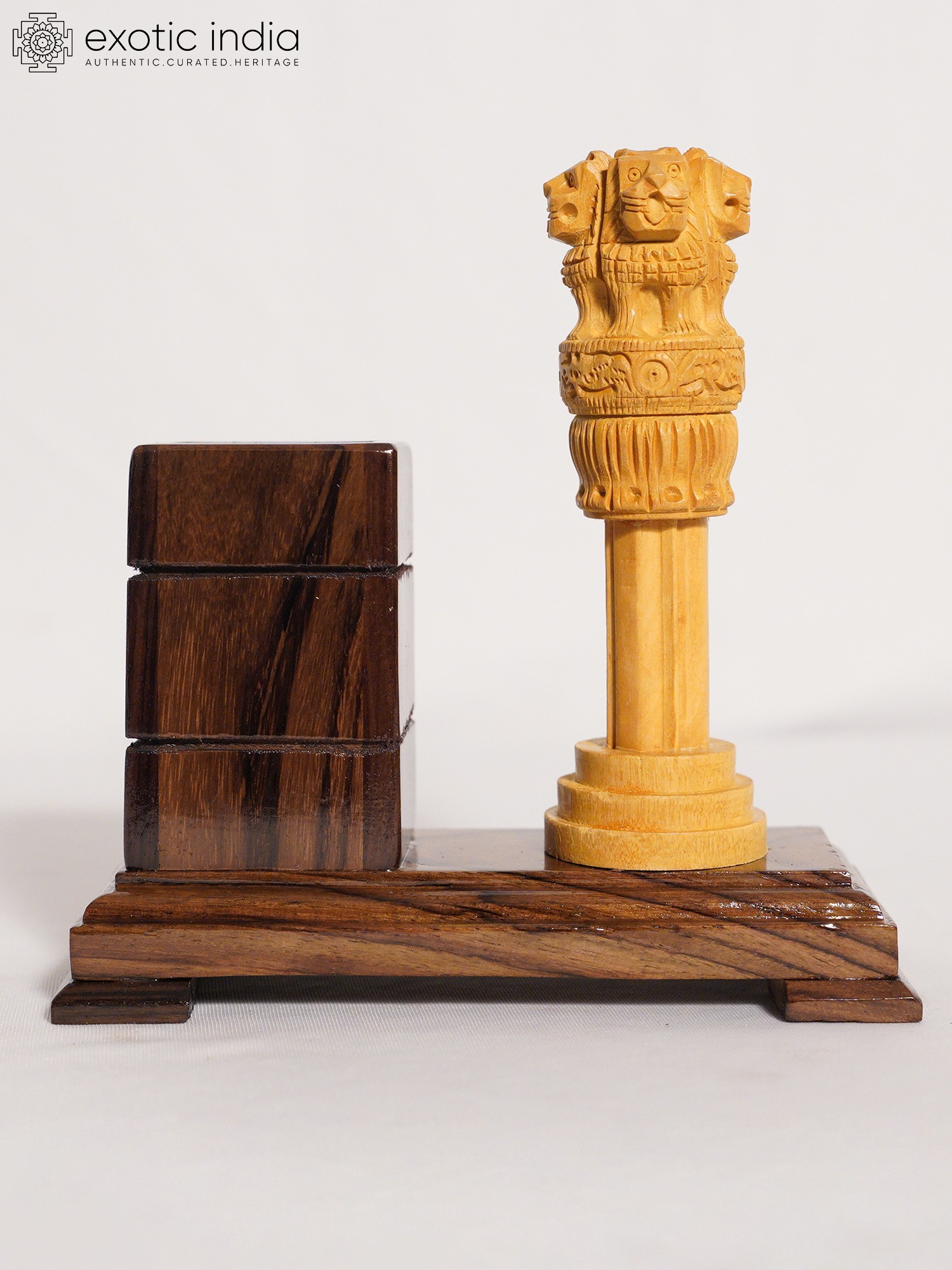 Each piece is carefully carved and assembled by skilled artisans, ensuring a unique character and a high level of detail. The pen holder section is constructed from rich rosewood, lending a deep, warm tone to the piece, while the Ashoka Pillar is rendered in a contrasting white wood to enhance detail and create a striking visual contrast. The result is a beautiful, durable, and functional accessory that will last for years to come. This blend of both visual appeal and practical functionality is what sets this piece apart, adding both beauty and utility to your daily routine.