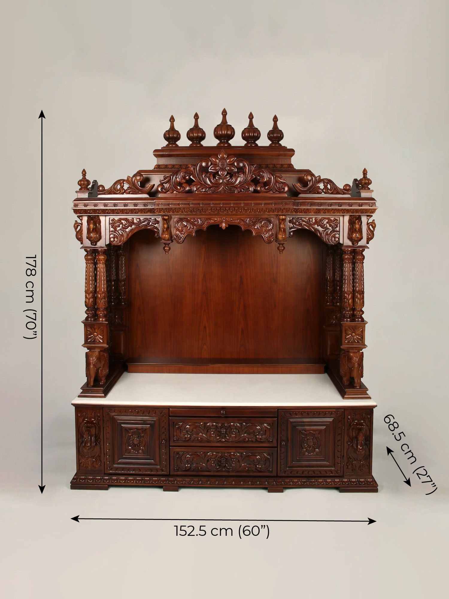 26" Home Temple Altar with Prabhavali and pedestal on Two Elephants Stand