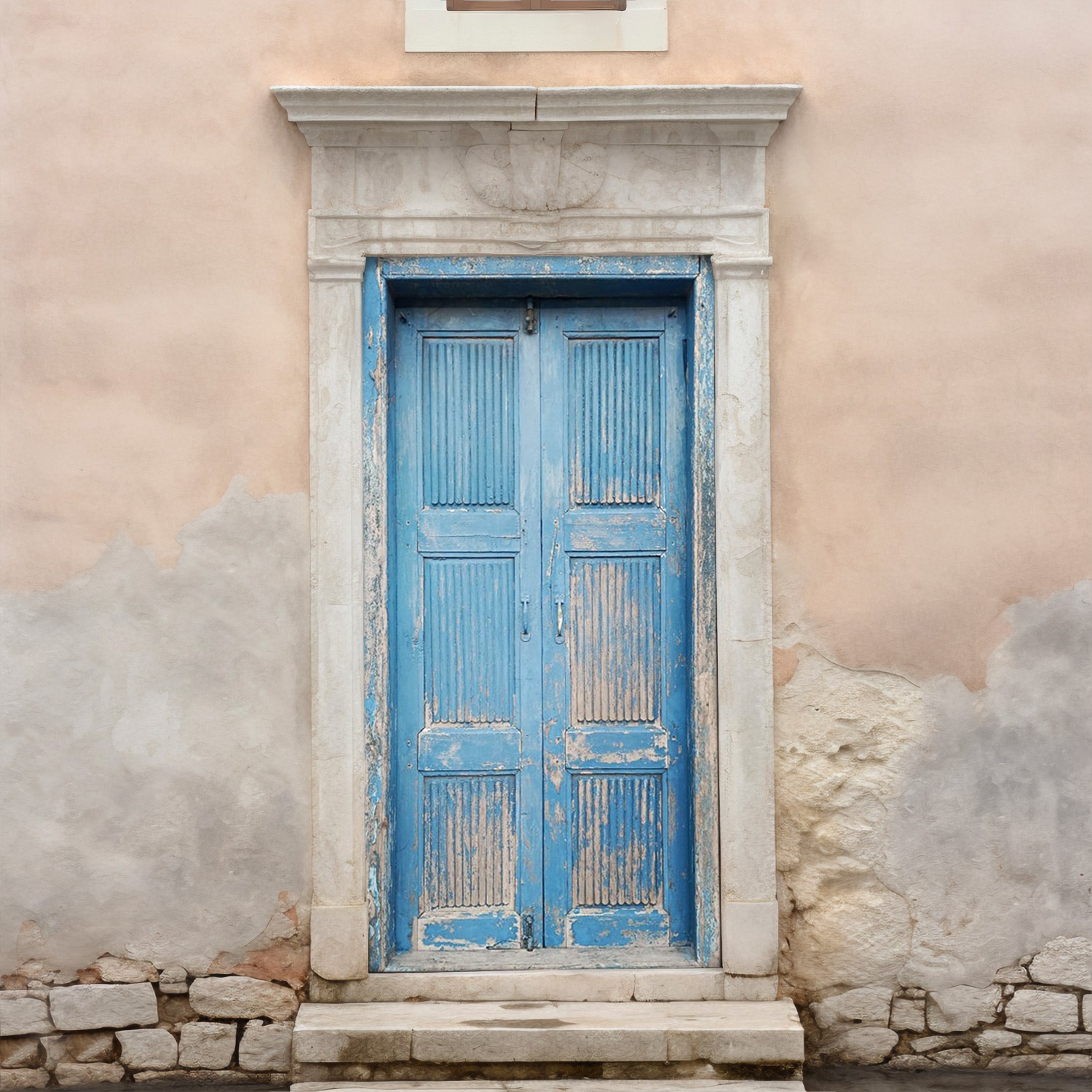 Crafted from solid wood, this door is a stunning example of traditional Indian craftsmanship. The intricately designed panels exhibit beautiful vertical detailing, adding depth and texture to the overall design. The aged blue paint, while showing signs of gentle wear, only enhances the door's antique appeal. Imagine the stories this door could tell—of bustling markets, quiet evenings, and the passage of time.