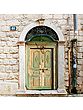 78" Floral Hand Carved And Block Design Wood Door With Vintage Style Knock