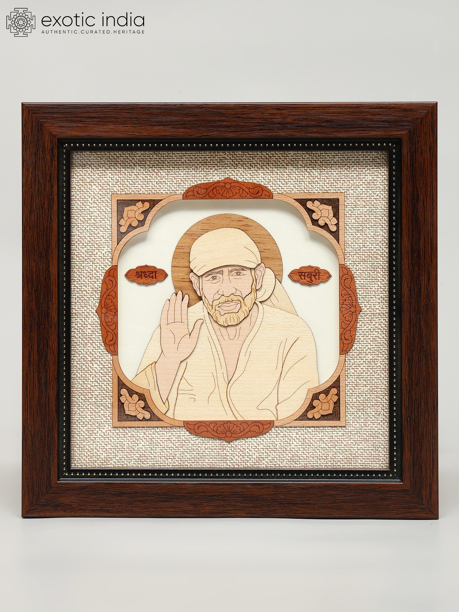 8" Blessing Sai Baba | Wood Carved Frame | Wall Hanging