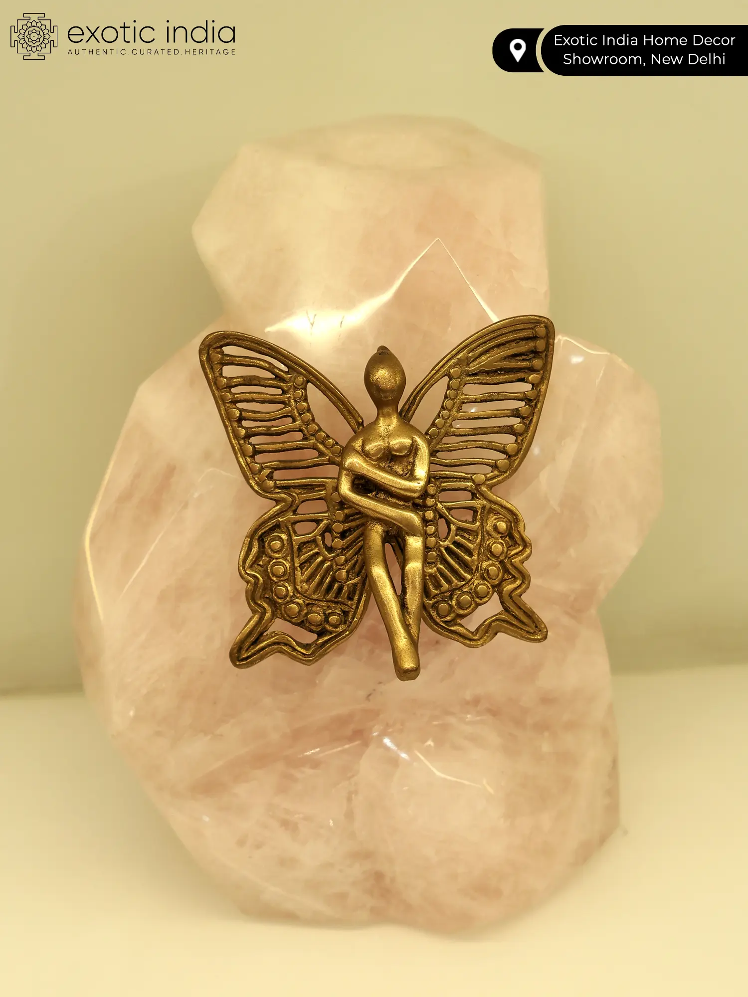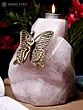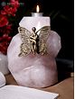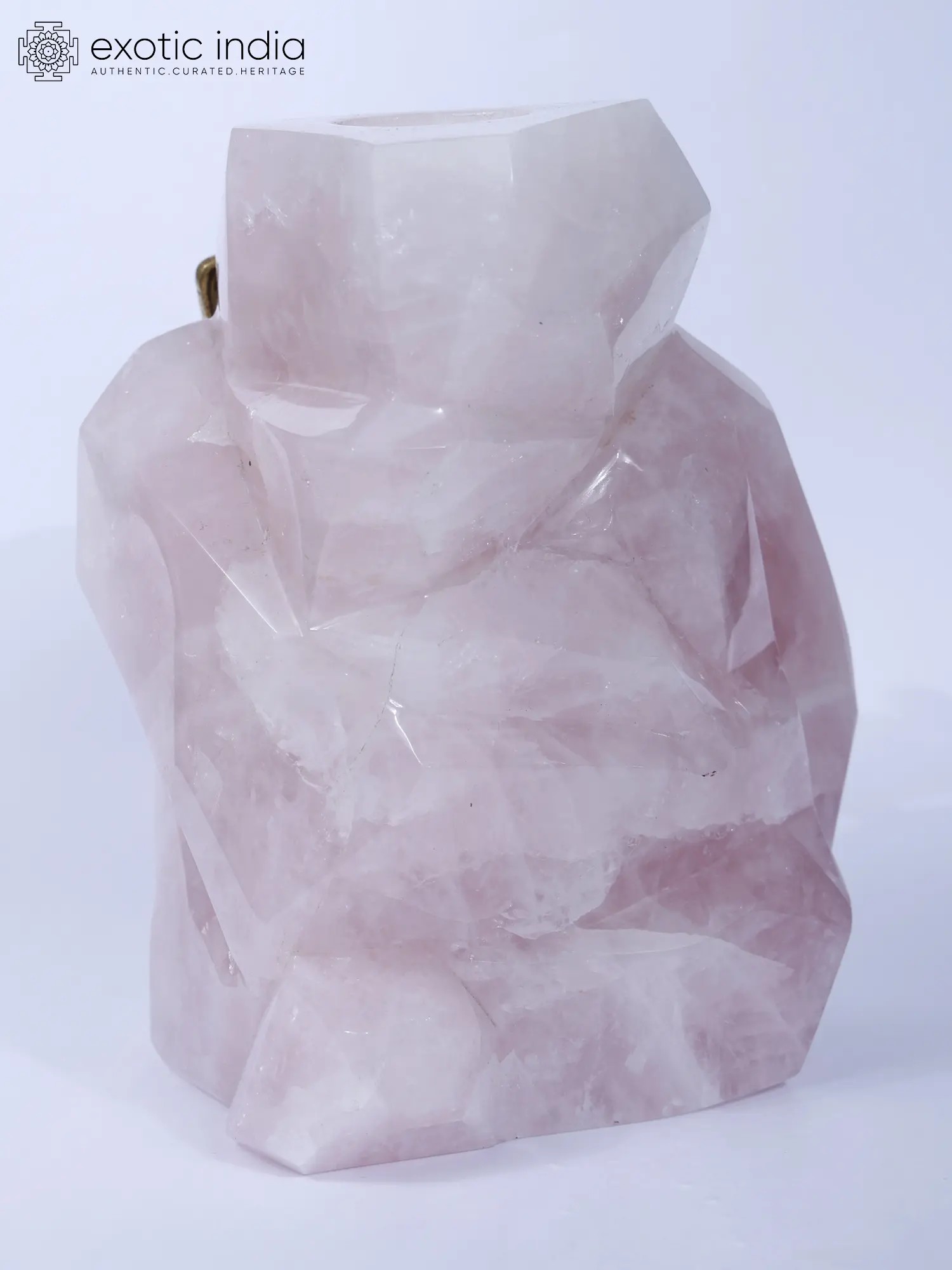 This Brass Winged Angel on Rose Quartz Gemstone candle holder, has spiritual harmony and divine presence. The angel's graceful wings symbolize protection and guidance, while the rose quartz gemstone candle holder exudes love and compassion. Placing this enchanting piece in a home invokes a sense of peace and serenity, creating a sacred sanctuary for introspection and meditation.
