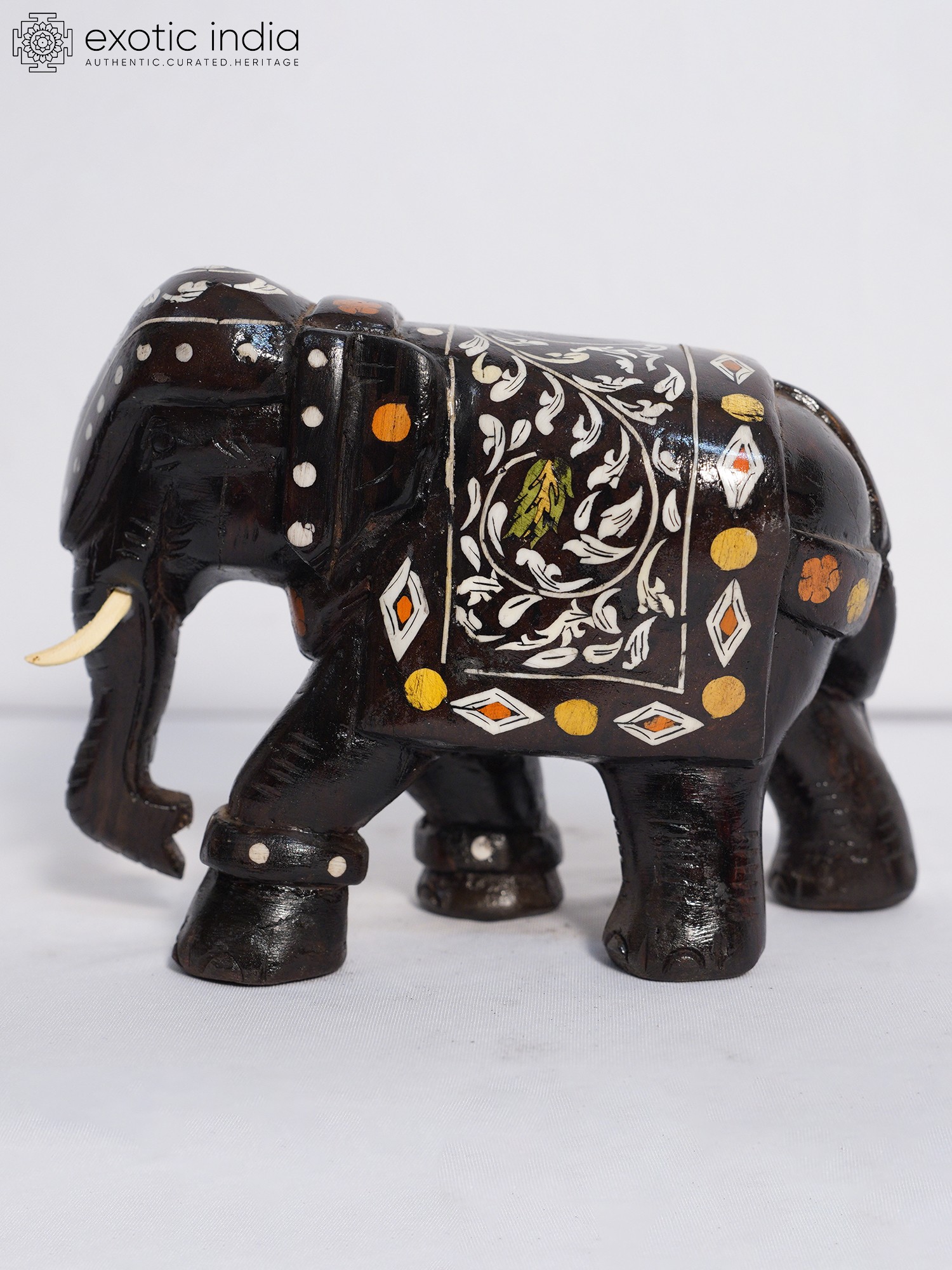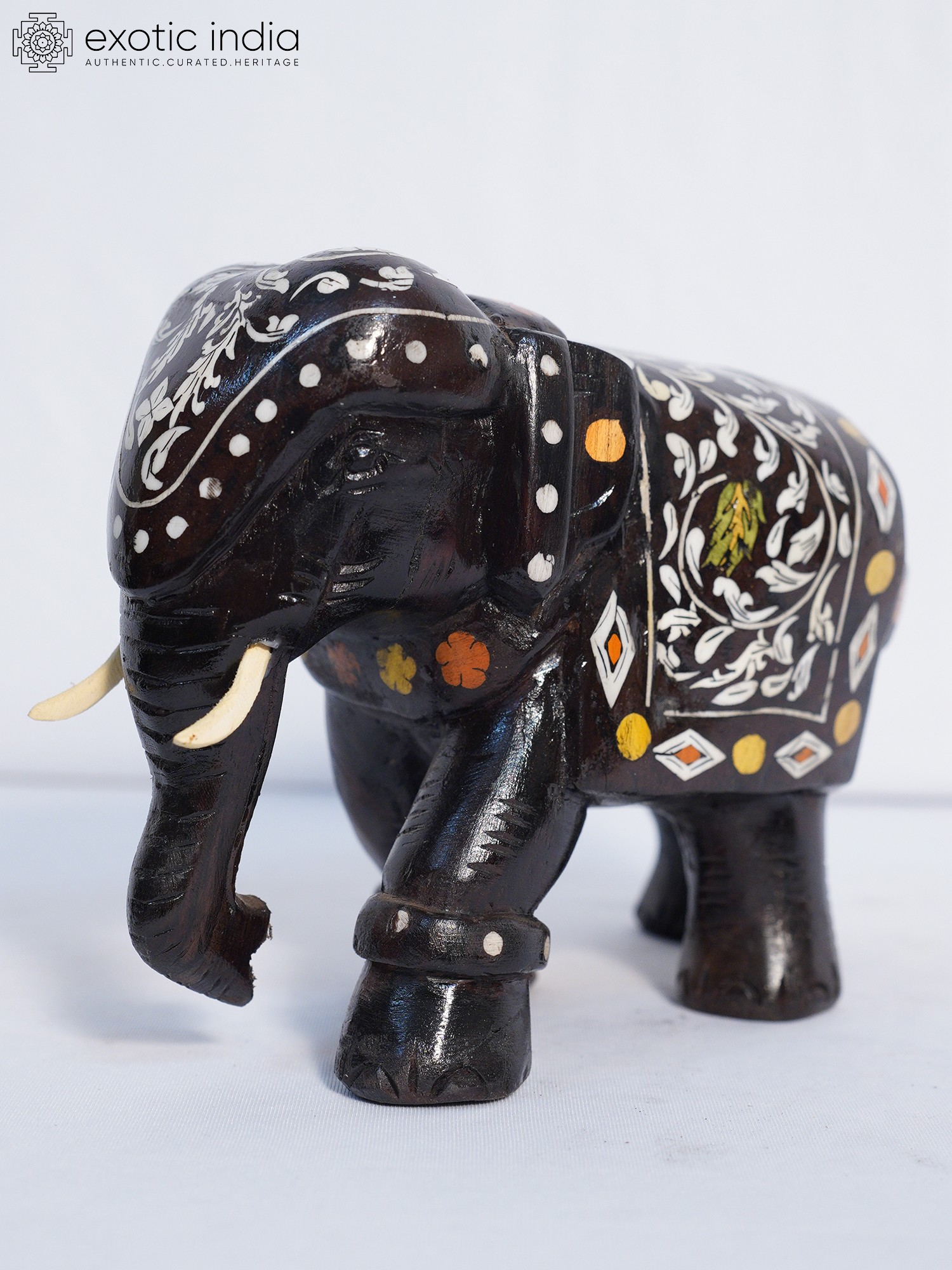 8" Elephant Playing With Ball | Wood Home Decor Item