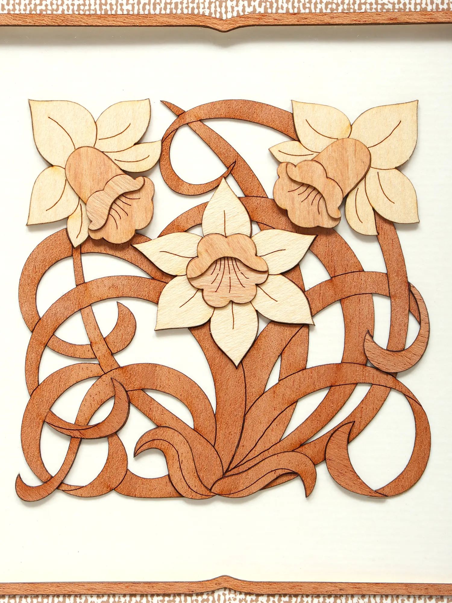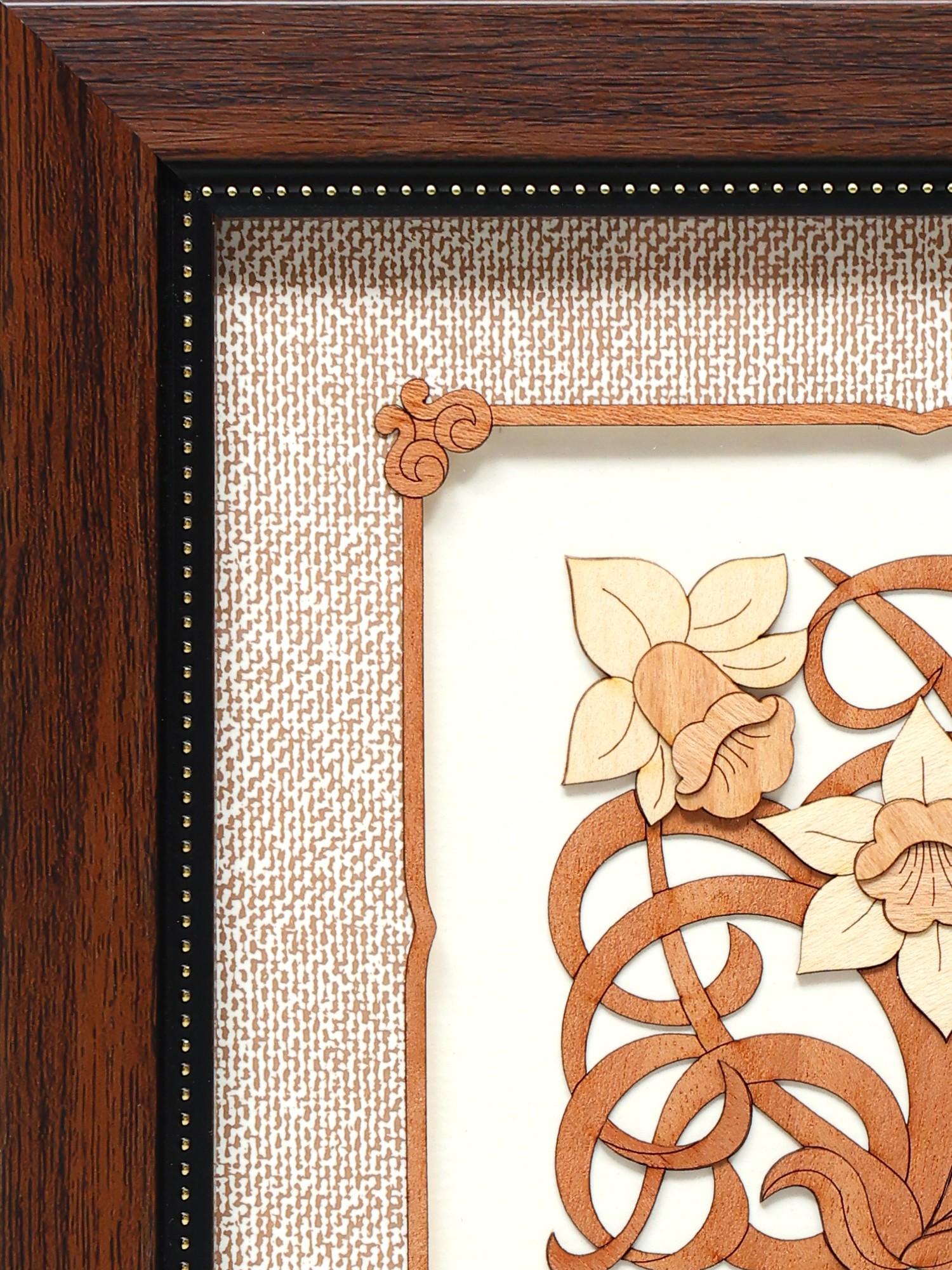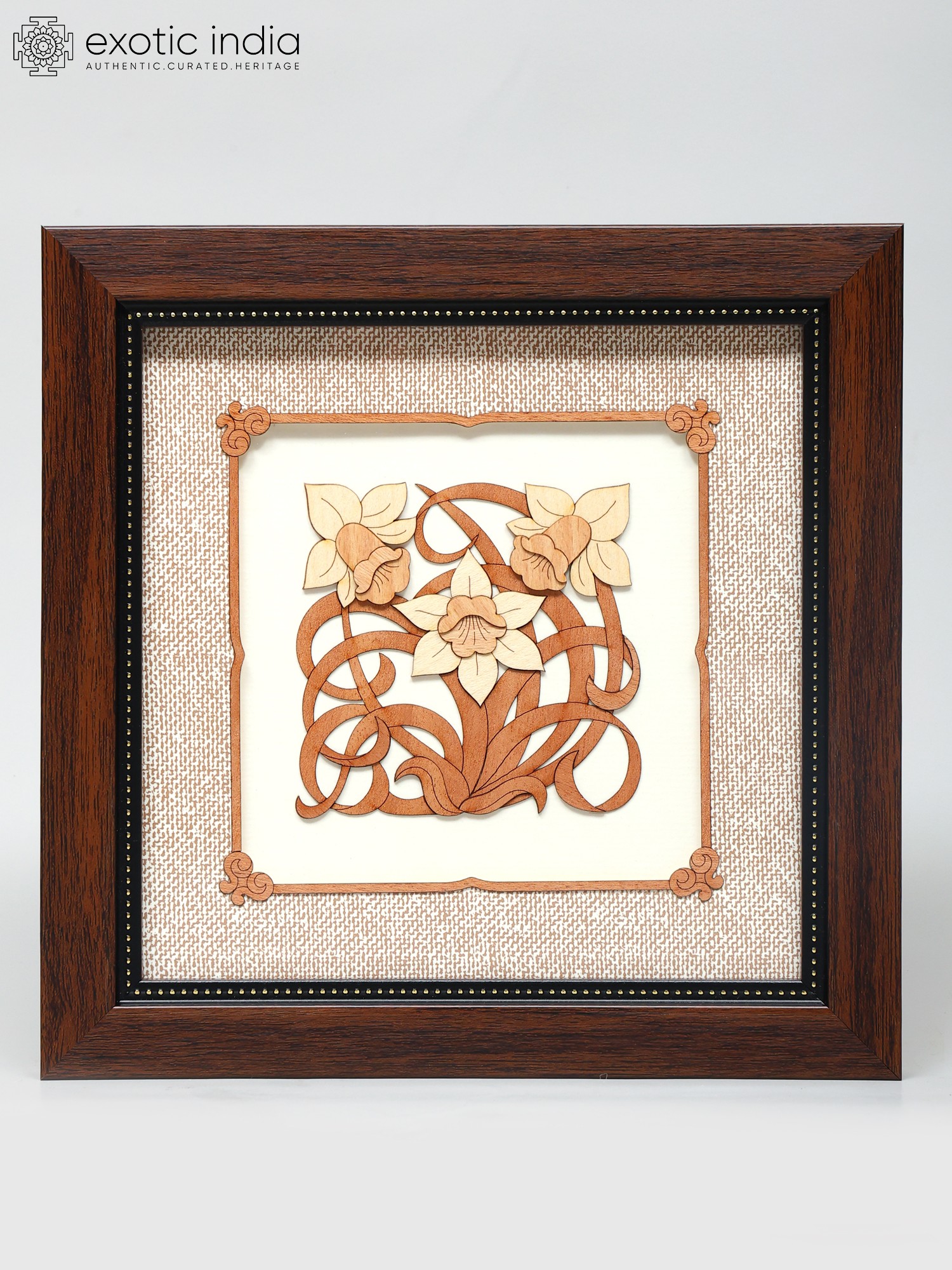 12" Royal Elephants Under Floral Arch | Wood Carved Frame | Wall Hanging