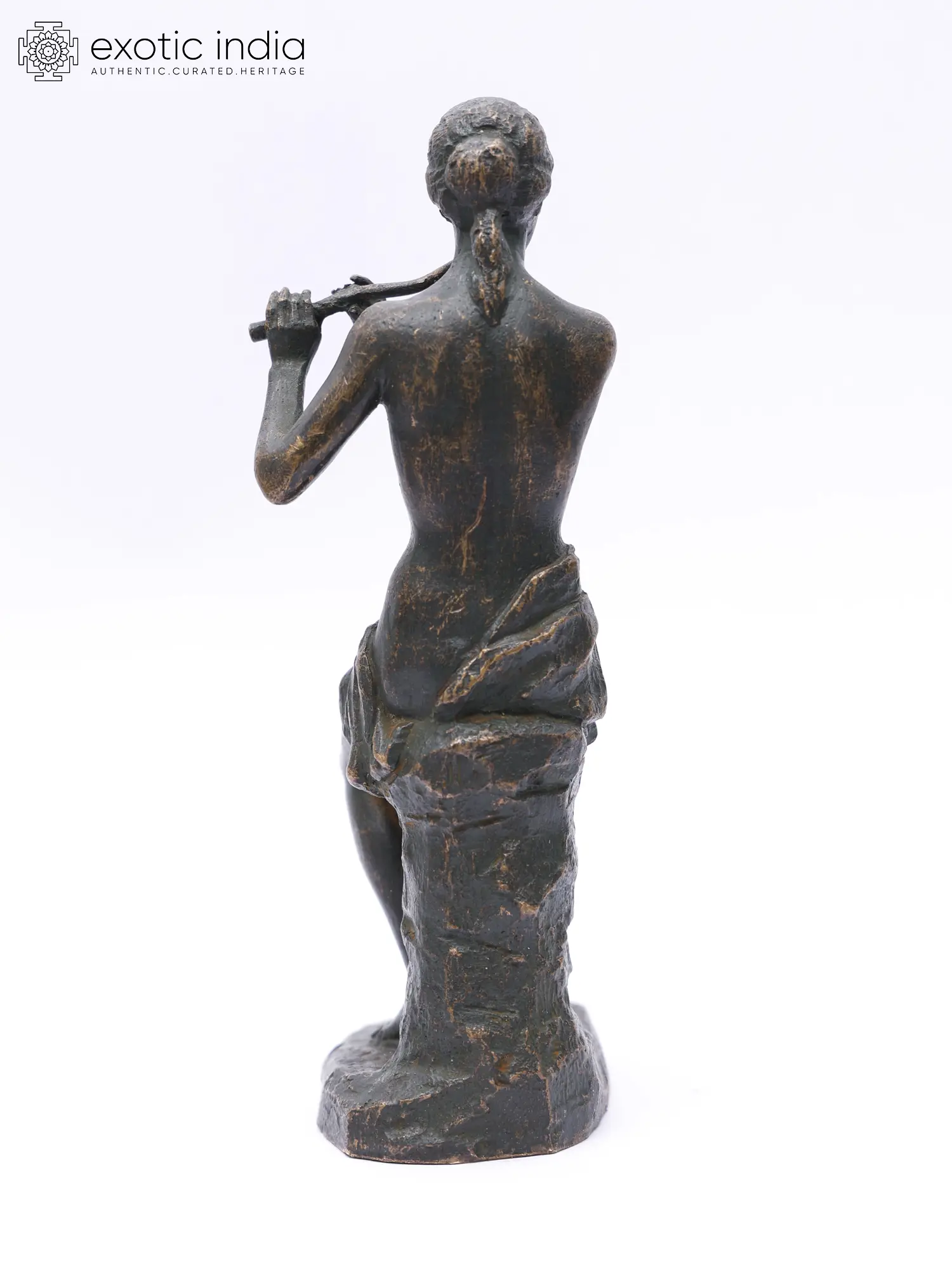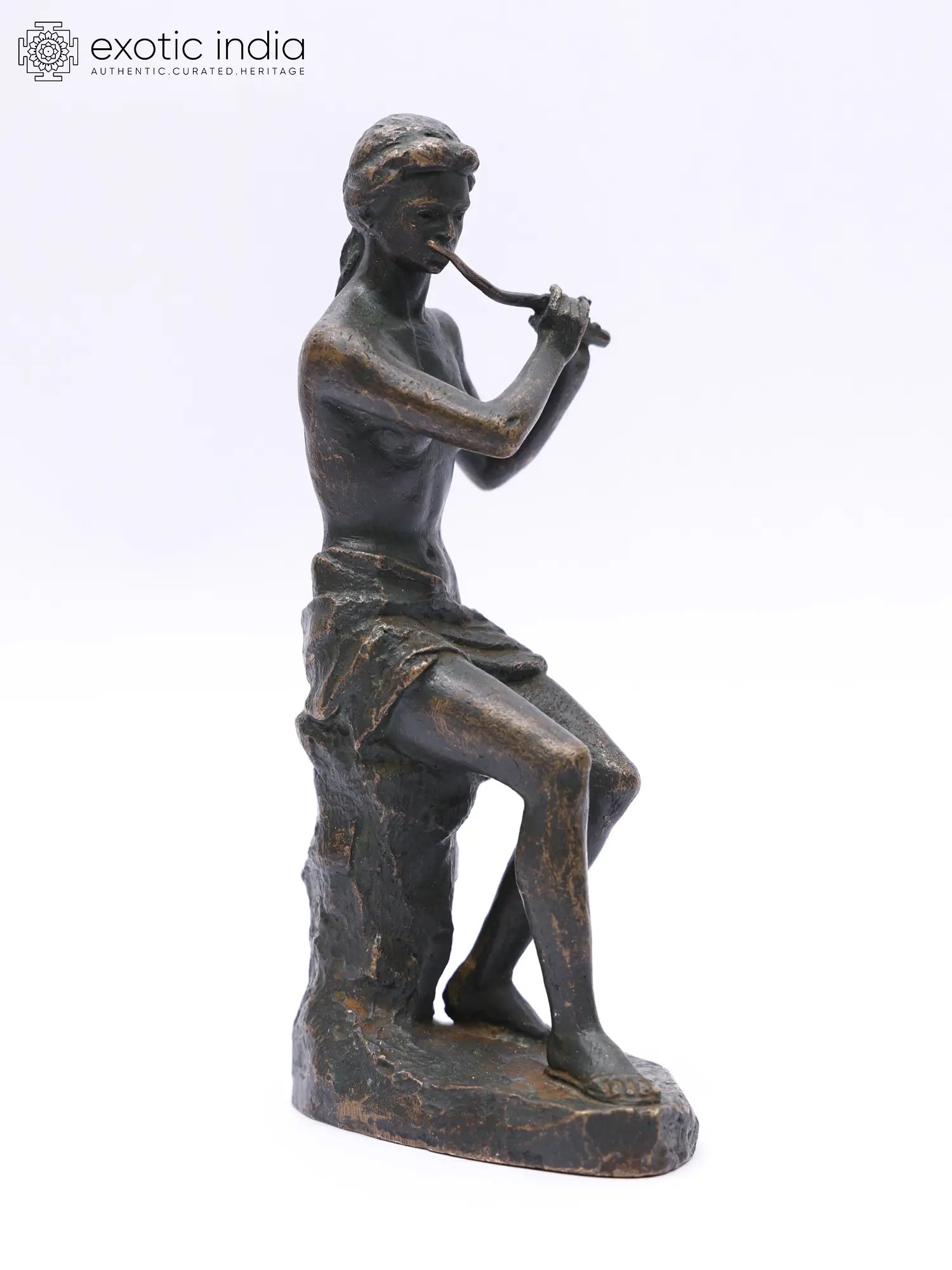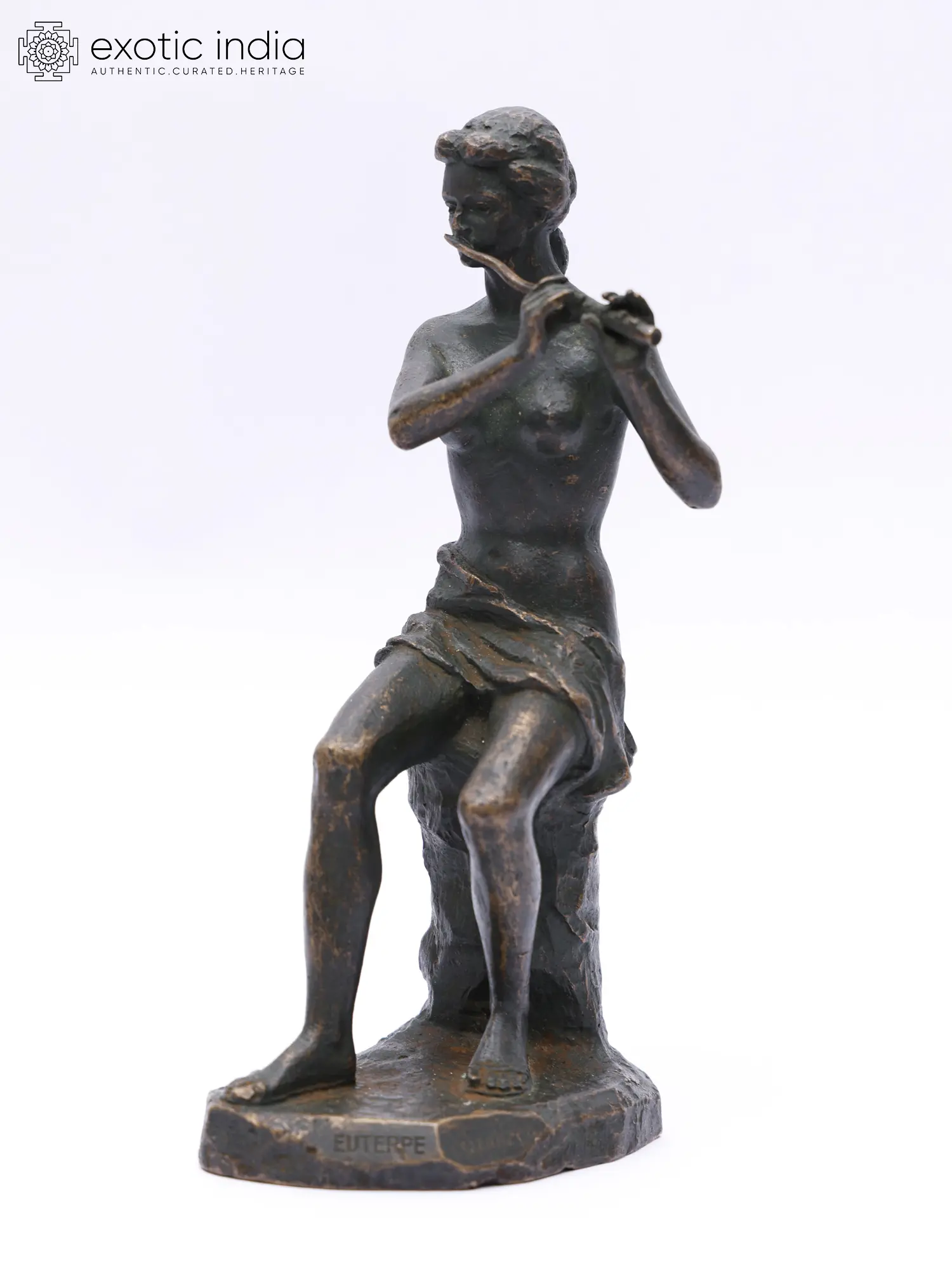 This bronze sculpture of a nymph playing the flute captures a timeless and ethereal beauty.
