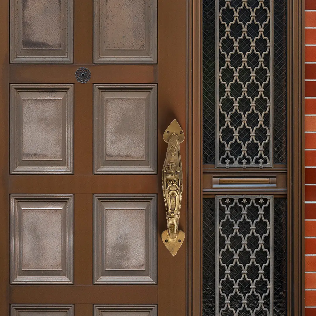 Transform your door into a statement piece with this distinctive handle. More than just a functional element, this piece is a work of art that will add character and charm to any space. Imagine the feeling of gripping this solid, weighty handle as you enter your home, a daily reminder of unique style. Its bold design promises to spark conversation and infuse your decor with a touch of global influence. Crafted to stand the test of time, this handle makes a lasting impact, setting the stage for an inviting and stylish home.