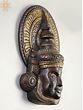 This exquisite 8" Vintage Kathakali Wall Hanging Face Mask is a testament to the rich artistic traditions of Kerala, India. Crafted from bronze, this captivating piece showcases the intricate details and vibrant essence of Kathakali, a classical dance form known for its elaborate costumes, makeup, and expressive gestures. The mask depicts a character with serene eyes, a gentle smile, and a majestic headdress, all meticulously carved and accented with gold detailing. It's more than just a decorative item; it's a window into a captivating world of art and storytelling. This stunning wall hanging will be the focal point of any room, adding a touch of both elegance and cultural significance to your décor.