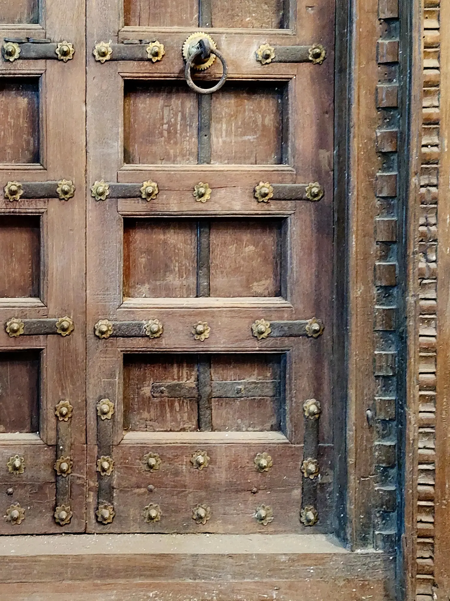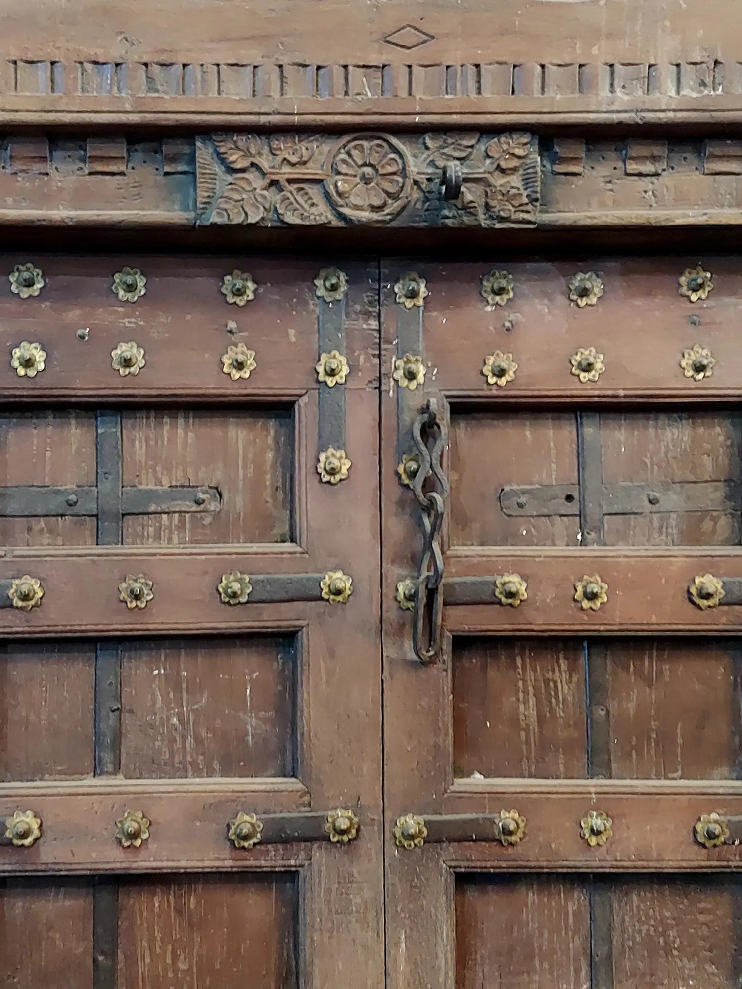 80" Large Iron Detail Rajasthani Wood Door For Home