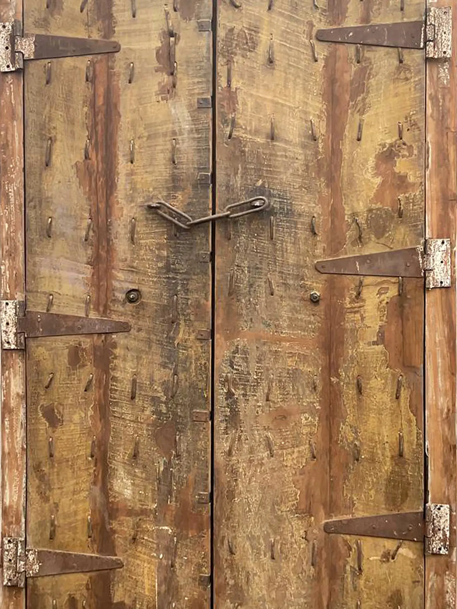 Step into a world of history and craftsmanship with this exceptional antique Indian door. More than just an architectural element, this door is a statement piece, a conversation starter, and a tangible link to a rich cultural heritage. Imagine the stories it could tell, the journeys it has witnessed, and the families it has sheltered. Now, you can own a piece of that history and infuse your space with its unique character.