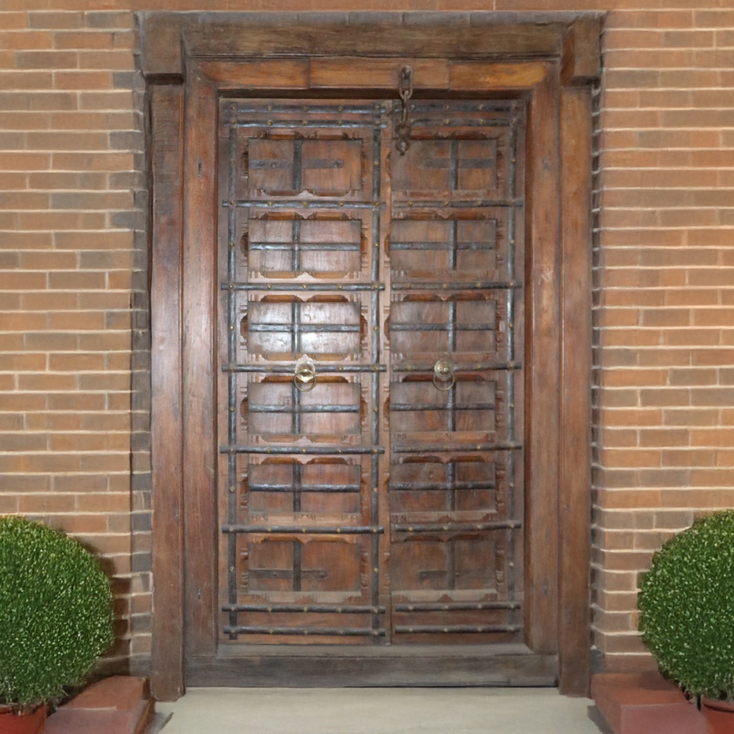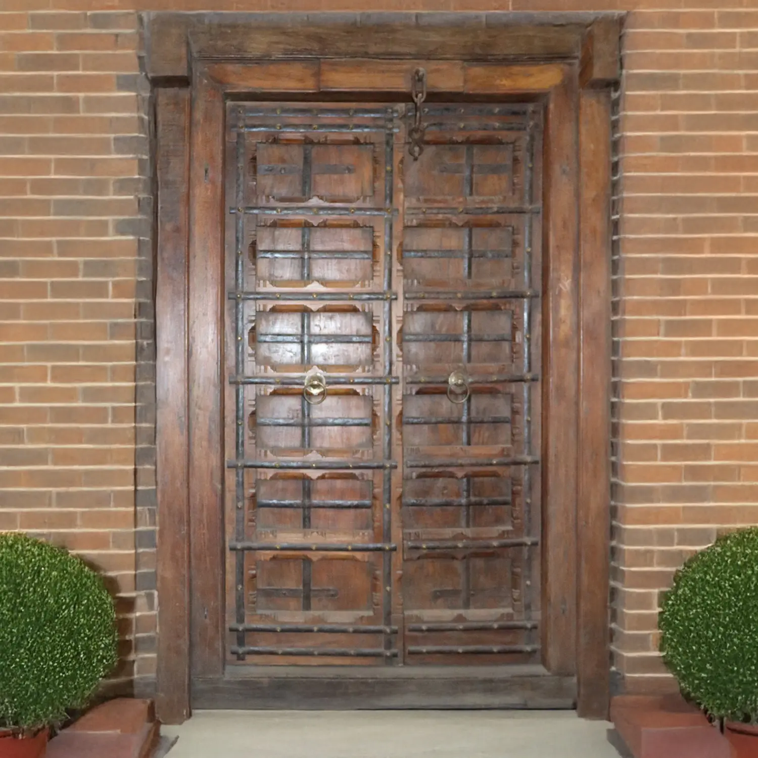 Brought to you from the city of blue, in Rajasthan - Jodhpur, this wooden door is a traditionally handcrafted door made with specific geometric figures. Colored in the shade of natural wood, it’s cut into the adjacent rectangle design that gives it a clean design with the double border, the black and golden highlight a noble combination of colors making any entry of your house seem majestical!