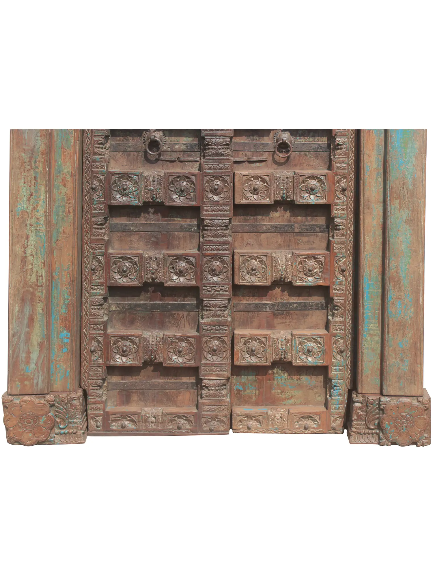 100" Large Size Traditional Floral Hand Carved Indian Woode Door