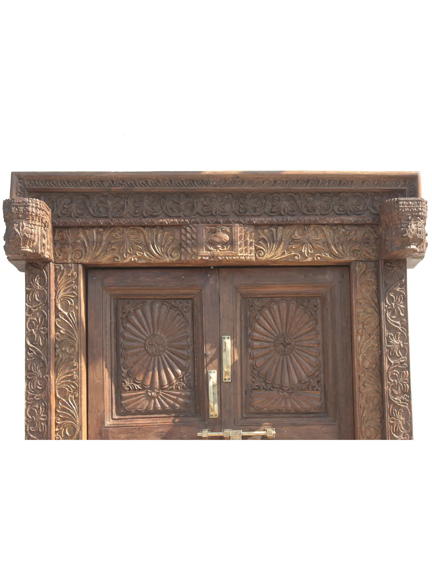 100" Large Size Traditional Floral Hand Carved Indian Woode Door