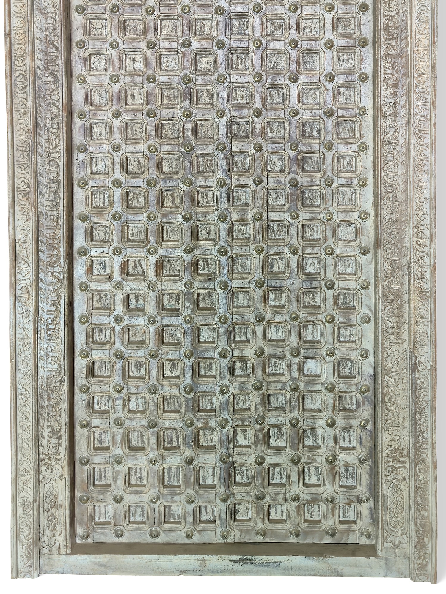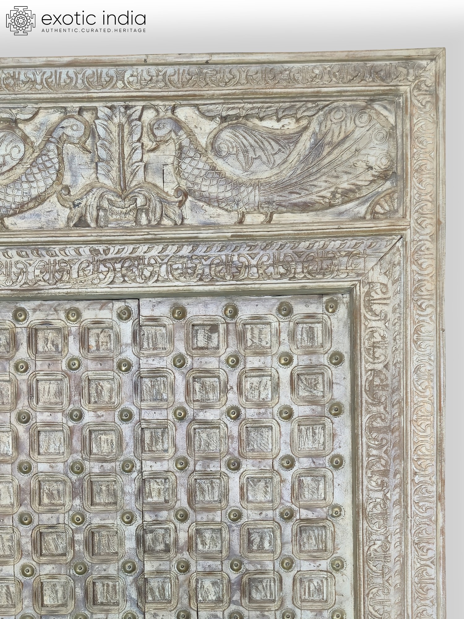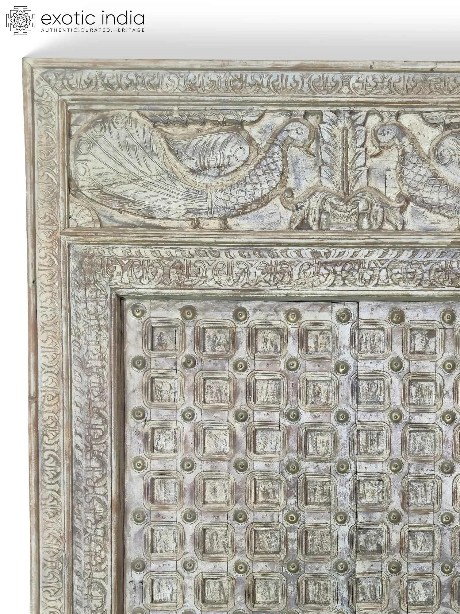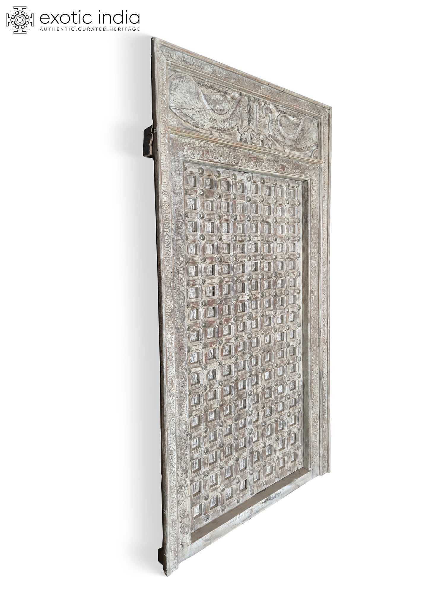 96" Large Vintage Door with Brass Work from Rajasthan | Home Temple Decor