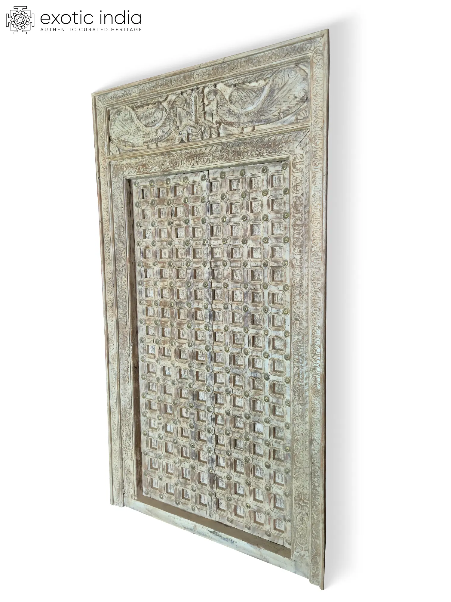 98" Large Rajasthani Vintage Door with Brass Work | Home Temple Decor