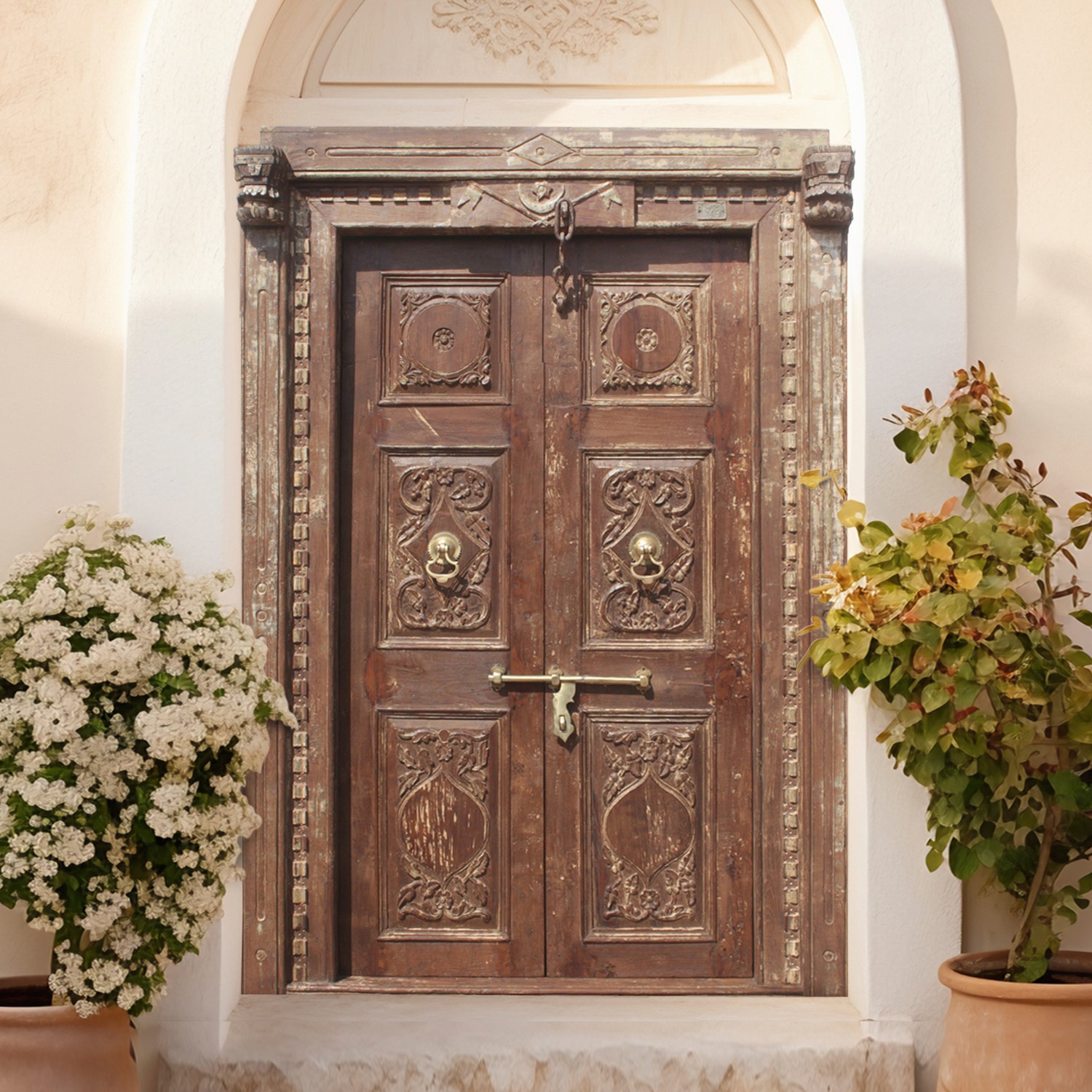 100" Large Size Traditional Floral Hand Carved Indian Woode Door