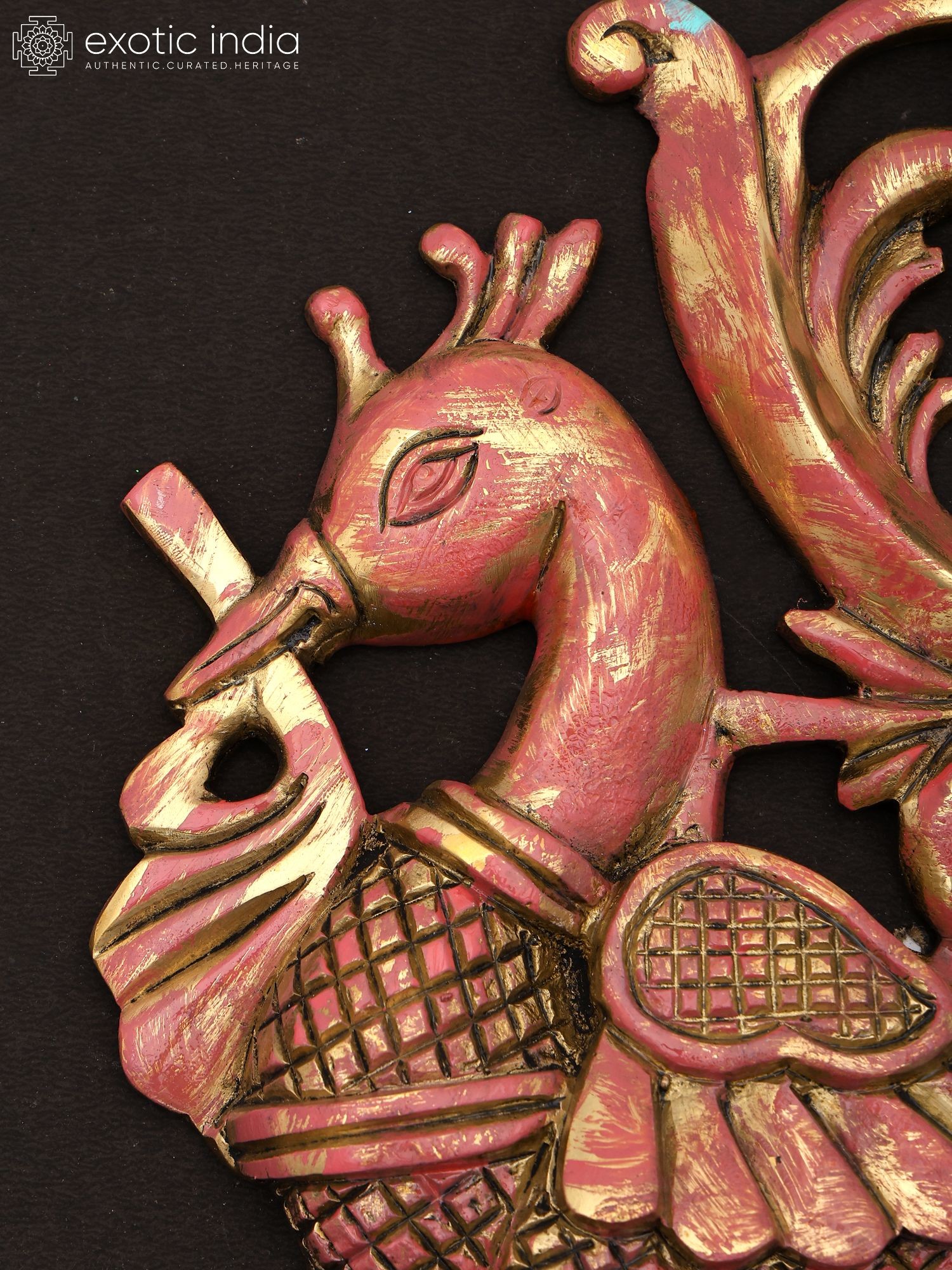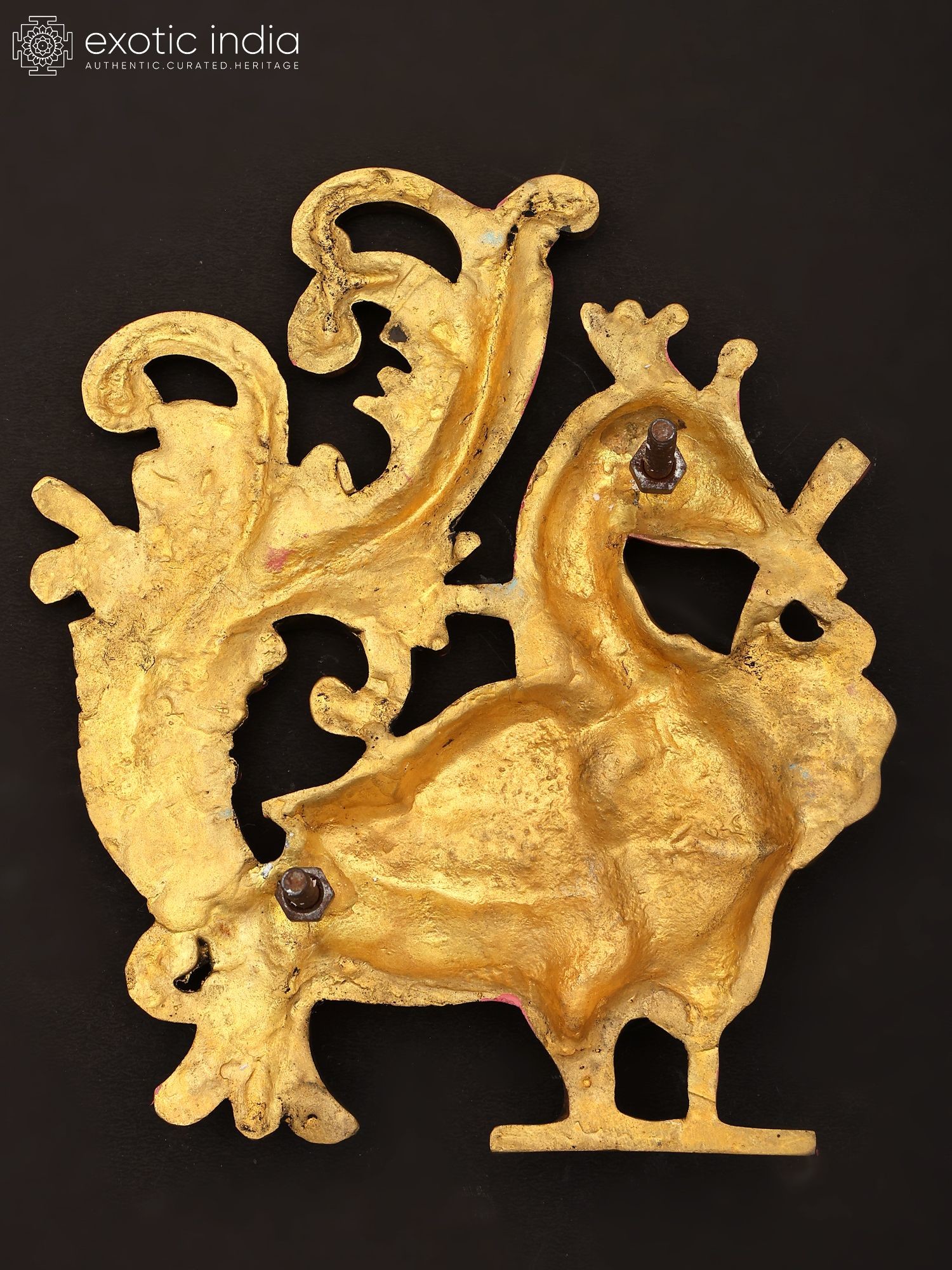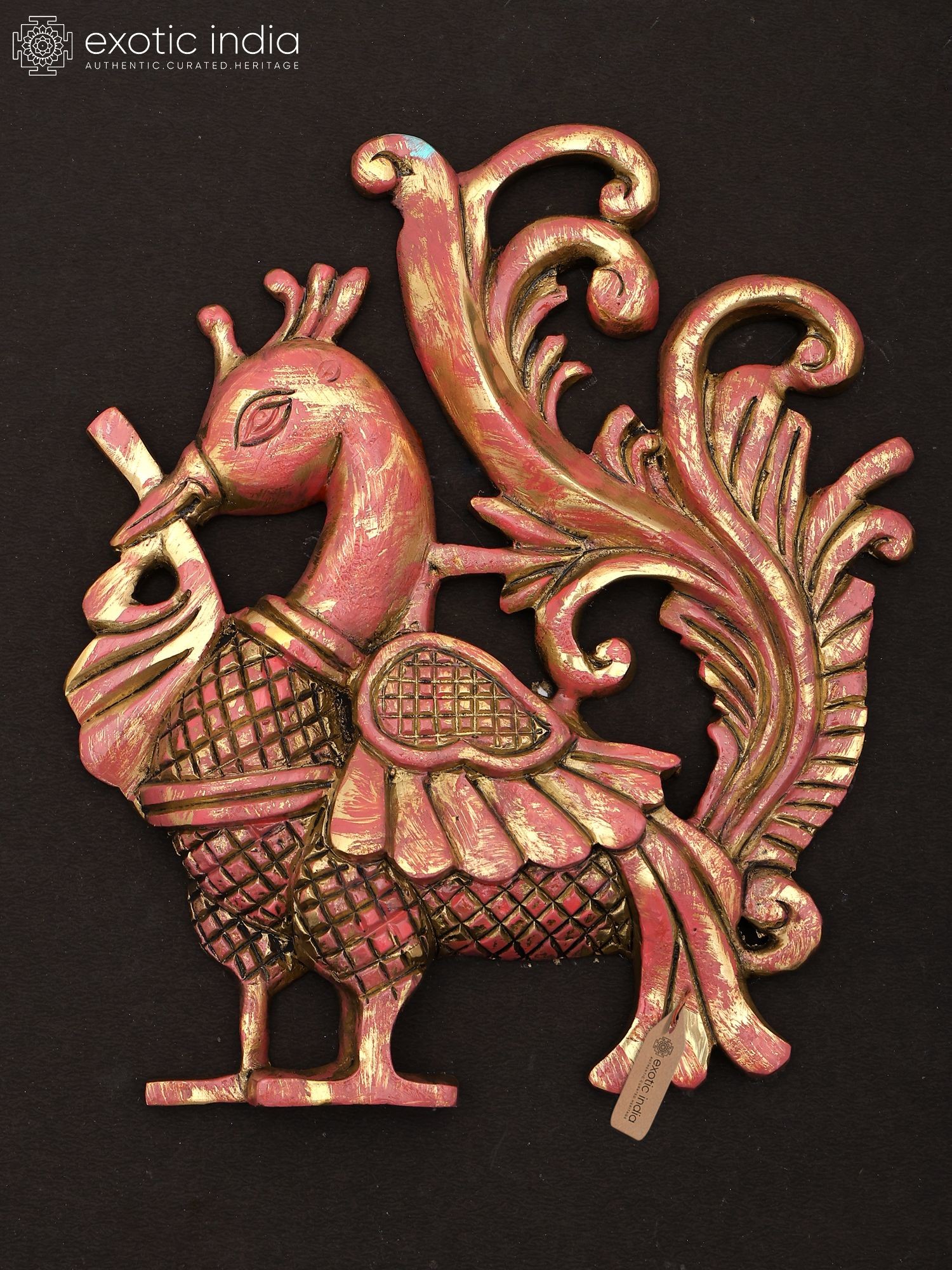 Intricate 9-inch brass wall hanging featuring a detailed peacock design.