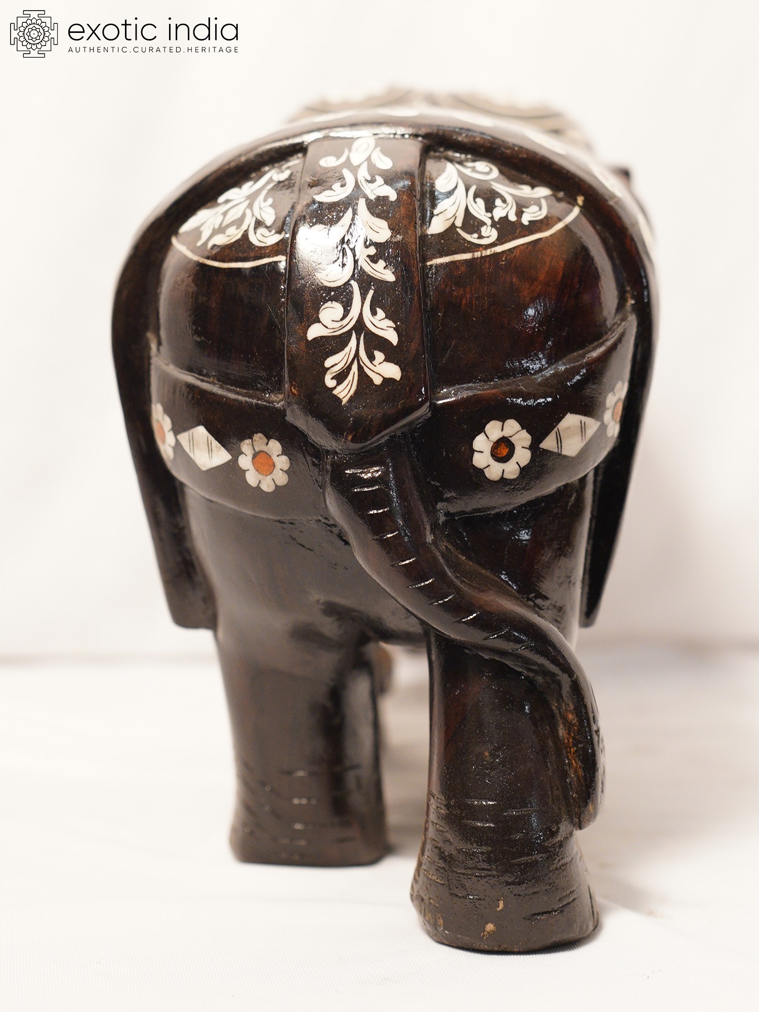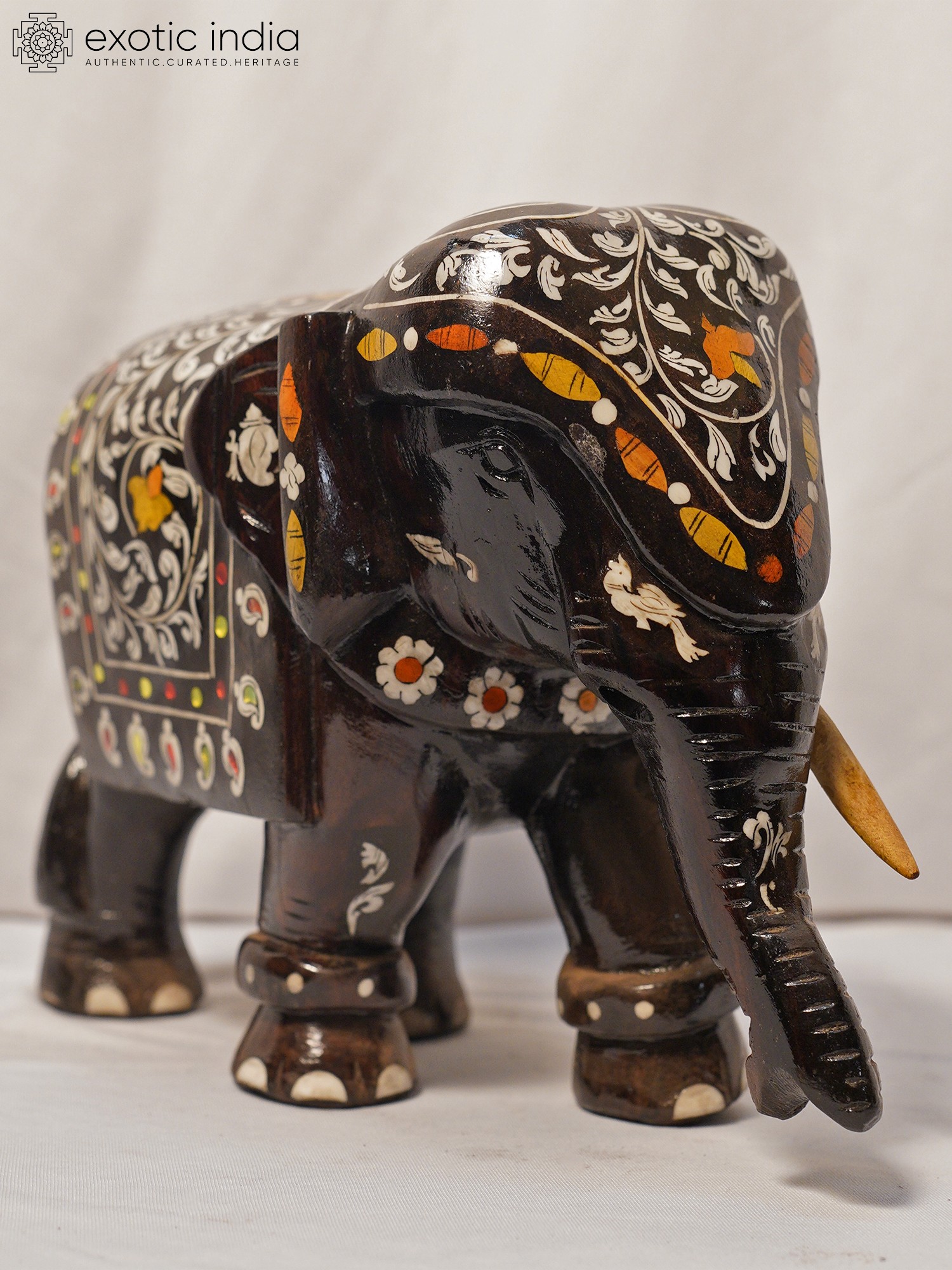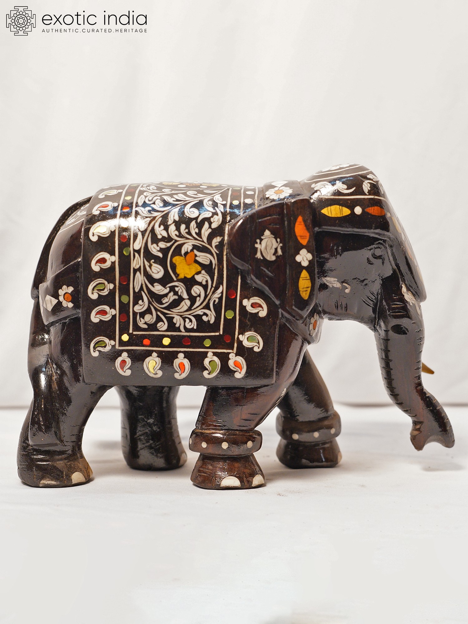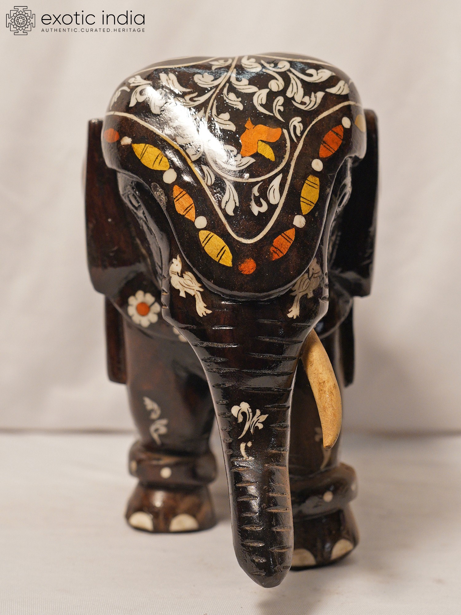 4" Small Trunk Up Elephant | Bidri Artwork | Gunmetal With Real Silver