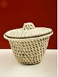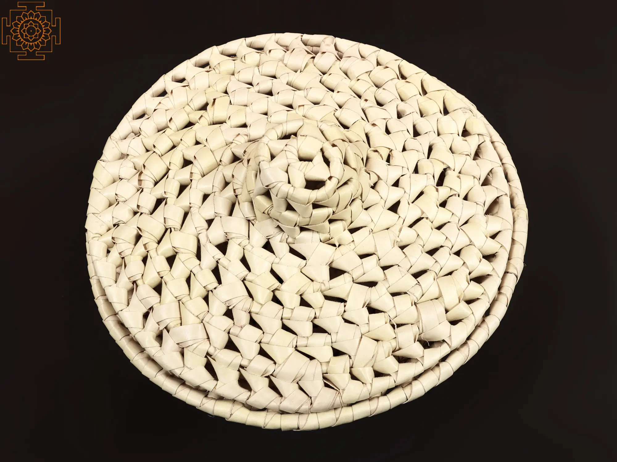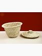 This Palm Leaf Basket with Lid is a testament to the sustainable craft techniques of the state of Tamil Nadu. Originating from the district of Kanyakumari, this craft is almost dead. These baskets made with the interlocking weaving of dried palm leaves could have the answer to half of the world's problems. These baskets are easy to maintain, bio-degradable, and have absolutely no health hazards. This basket which also comes with a lid is a perfect storage option for dry food items or items with long shelf life. They can also be used for keeping small decorative items. In whatever way they are kept they will always be reflecting the rich cultural legacy of Tamil Nadu.