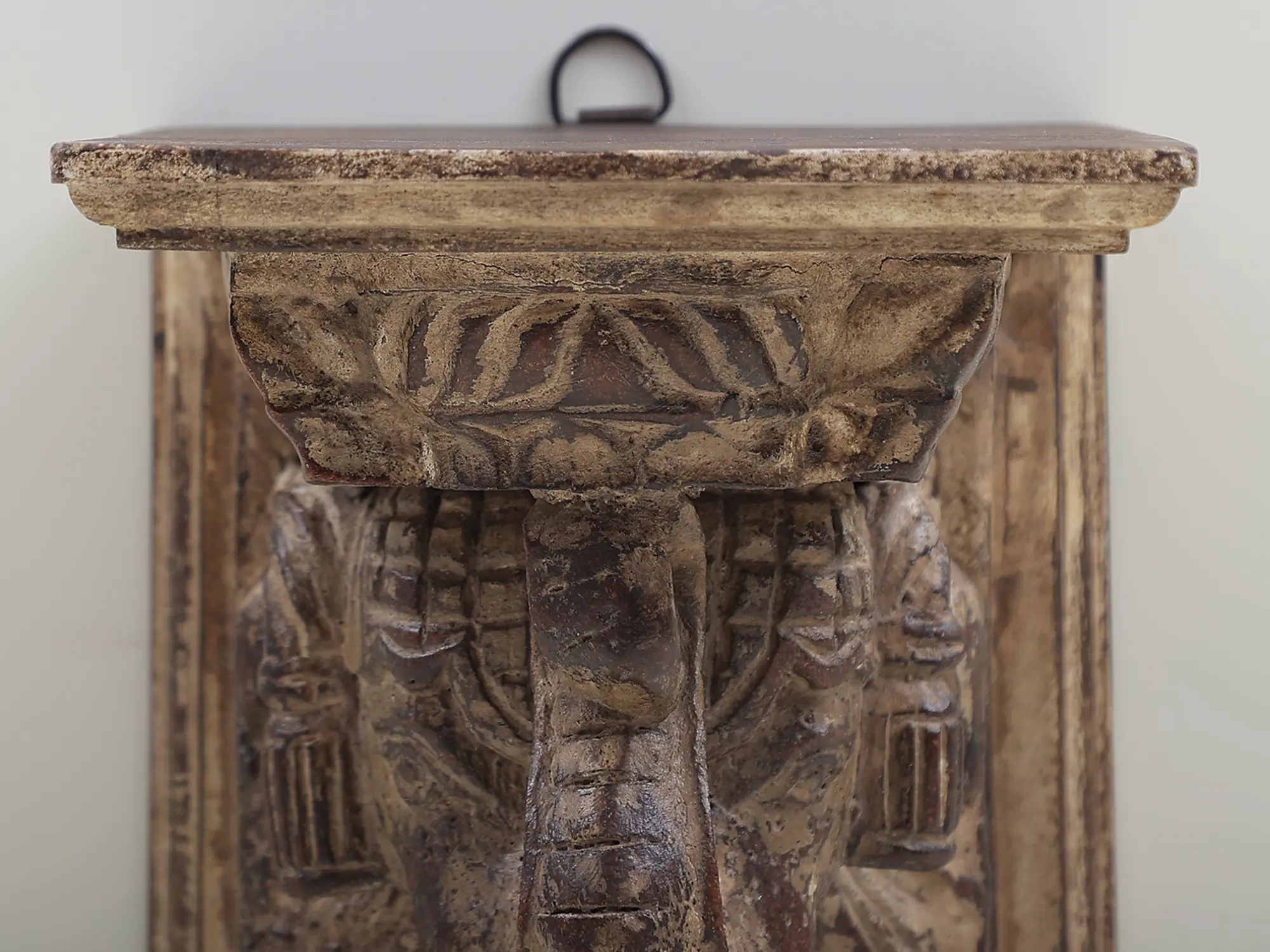 A symbol of grandeur and royalty, elephants have been forever a part of Indian architecture, especially depicted on the walls, doorjambs, and windows of palaces as a motif of the kings’s prowess and wisdom. With this wall mount bracket, adorned with the head of an elephant, you can recreate the splendor of the past in your space. Fine details on the figure of the elephant and its upraised trunk bring superb realism to the wooden bracket, which carries an antique appeal capable of transforming your space into the ornate interiors of a royal palace.
