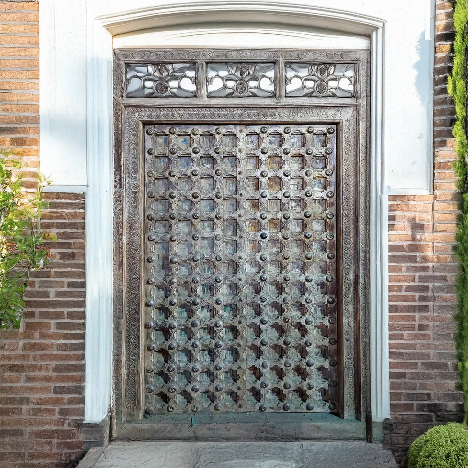 Step into a world of timeless beauty with this exquisitely crafted wooden door. Evoking the grandeur of traditional Indian architecture, this piece serves as a captivating statement, blending historical charm with exceptional artistry. Imagine the stories this door could tell, the secrets it has guarded, and the countless passages it has witnessed. Now, envision it gracing your home, adding a touch of exotic elegance and unique character to your living space.