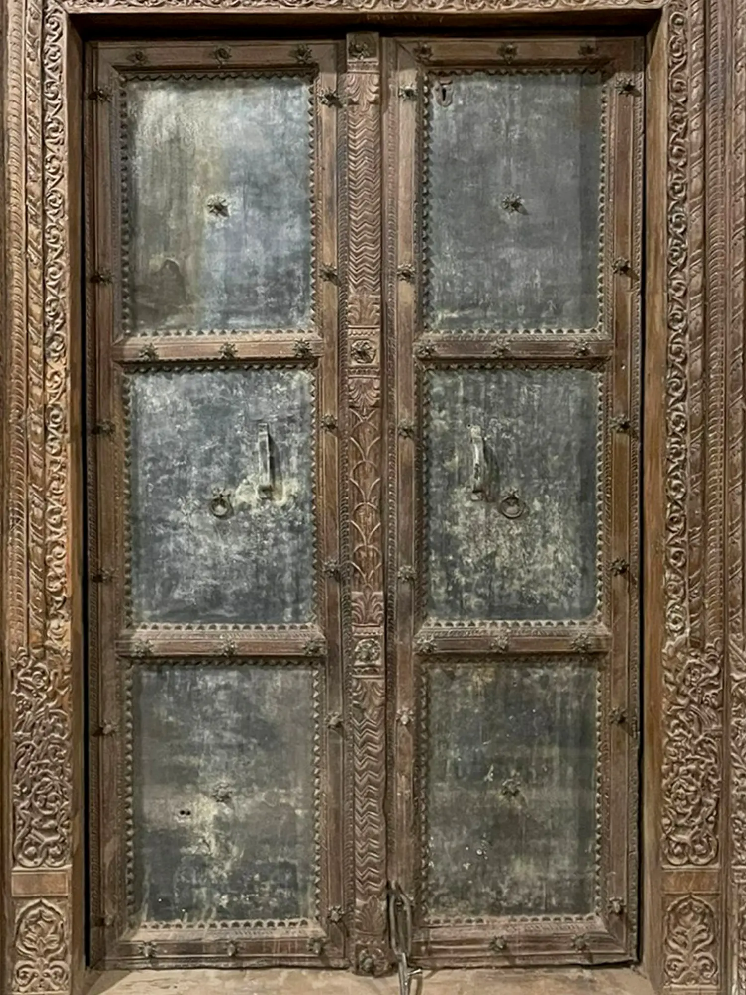 We must exercise extreme caution in how we use the planet's resources and how much we are permitted to consume. To save and continue, we must embrace the concept of recycling. This enormous ancient solid recycled wooden door is the embodiment of all conservation concepts. This is a robust door with a rich antique feel that may be an amazing home décor as well as a powerful entry. It has nicely carved panels in European style and all of the necessary door parts. A strong handle, kundi, and chitkani are used to facilitate the locking and opening procedure. This door is adorned with all the elements that will draw the attention of spectators while also providing security to the home.
