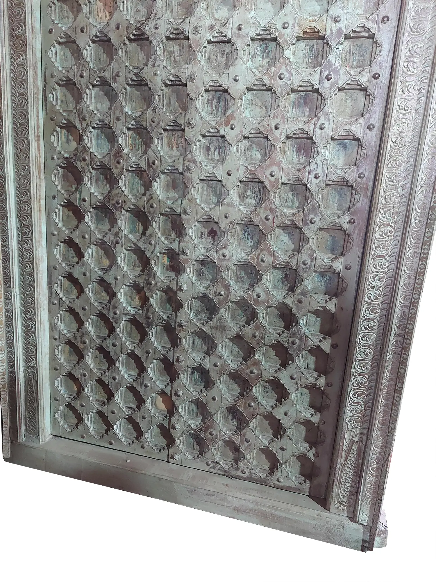 100'' Large Maze Design Old Wooden Door With Traditional Lock | Vintage Doors From Rajsthan