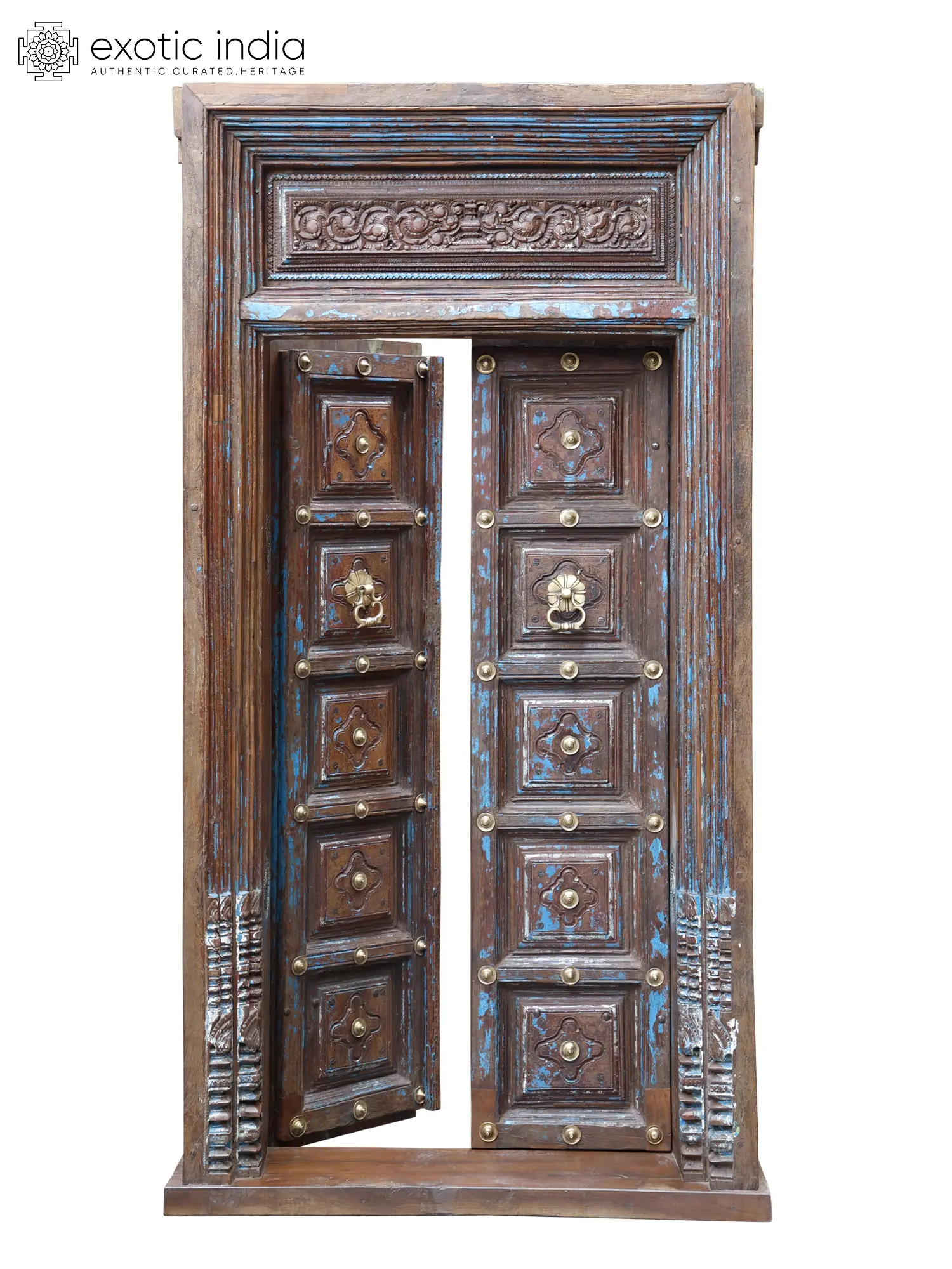 The brass decorations adorning the body, along with two brass door knockers, add a touch of regal splendor and grandeur. Each element of this door tells a story, resonating with the spirit of traditional Indian craftsmanship and heritage. It serves as a beautiful reminder of the rich cultural tapestry and the importance of preserving our heritage while embracing sustainable practices.
