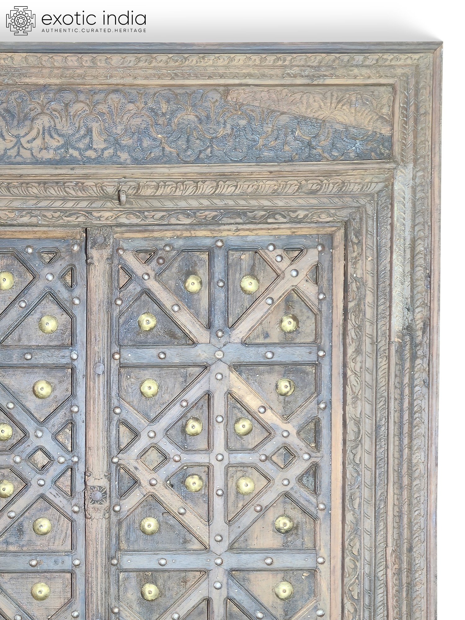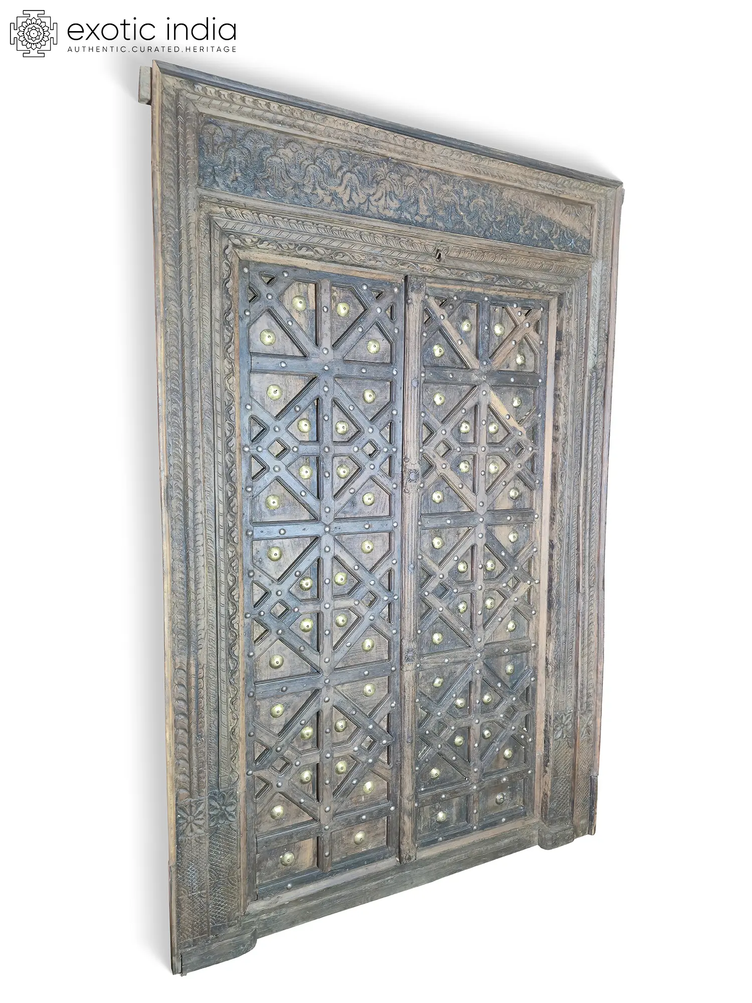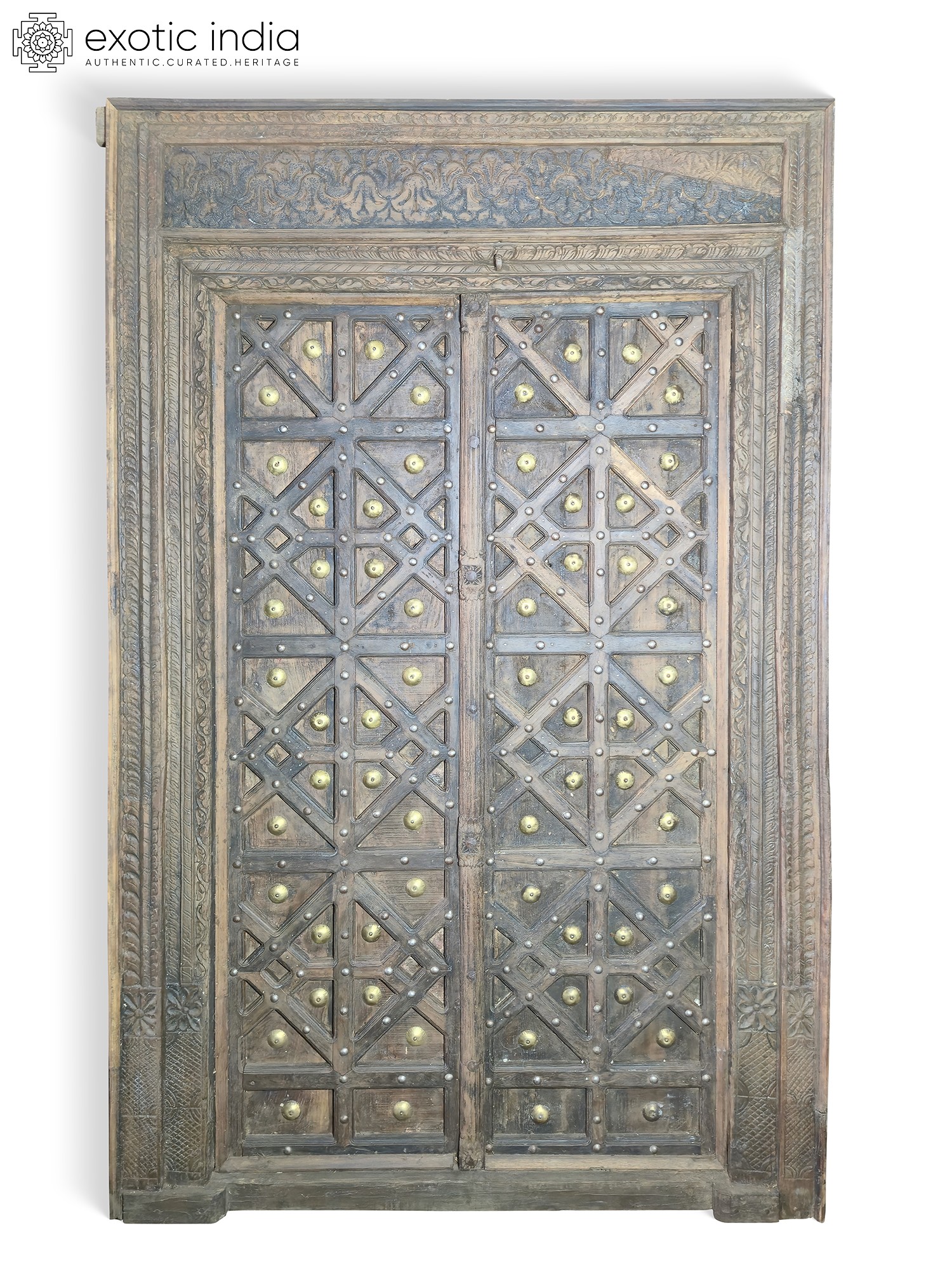 86" Large Traditional Flower Carved Teak wood Door With Knock
