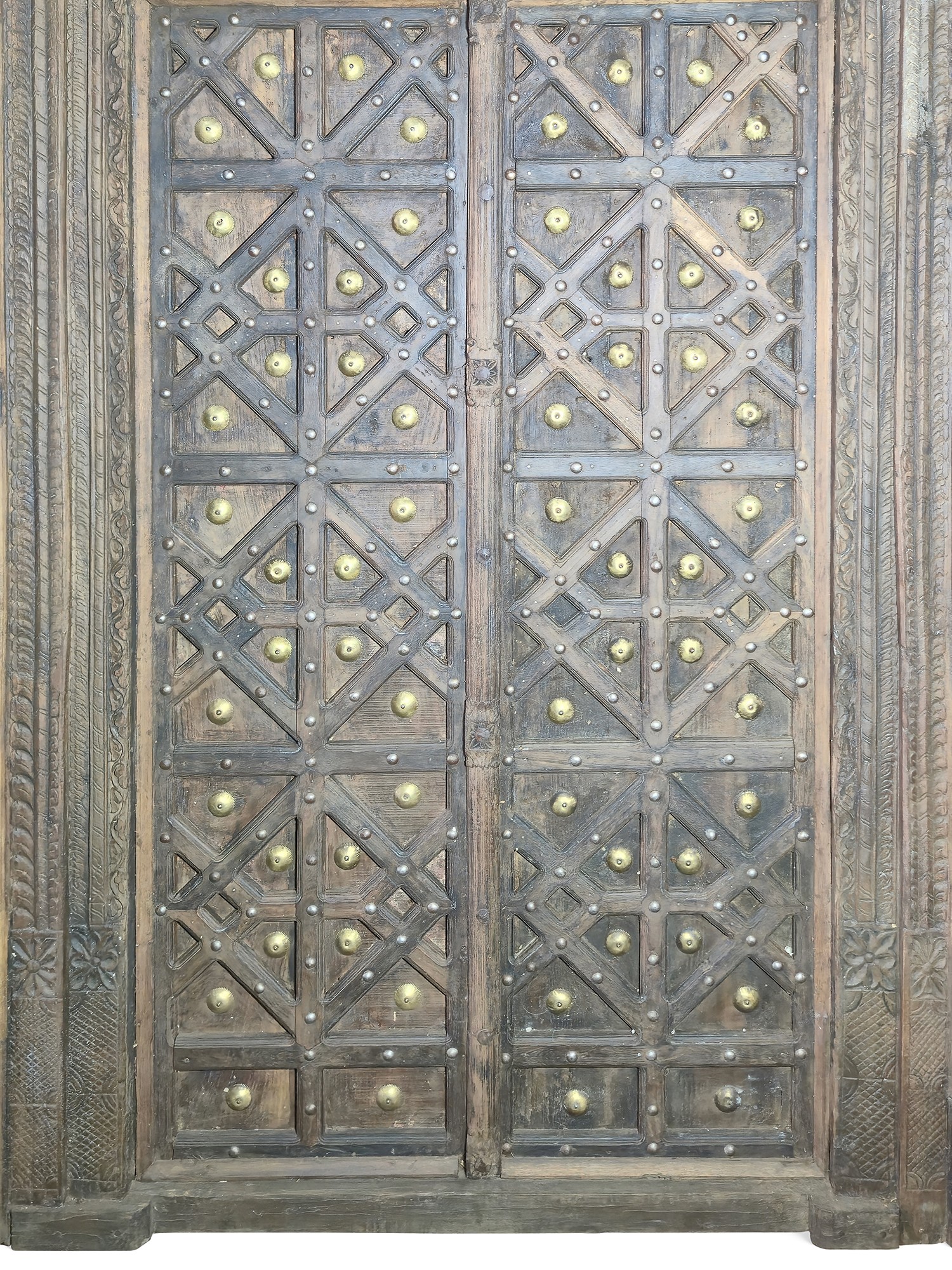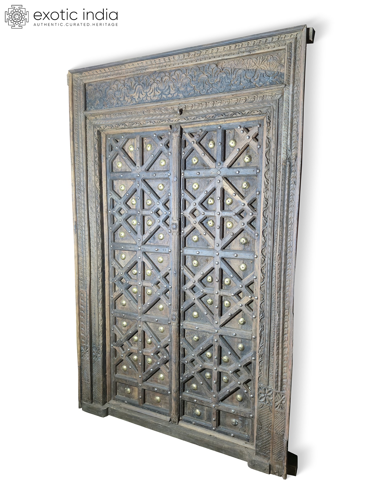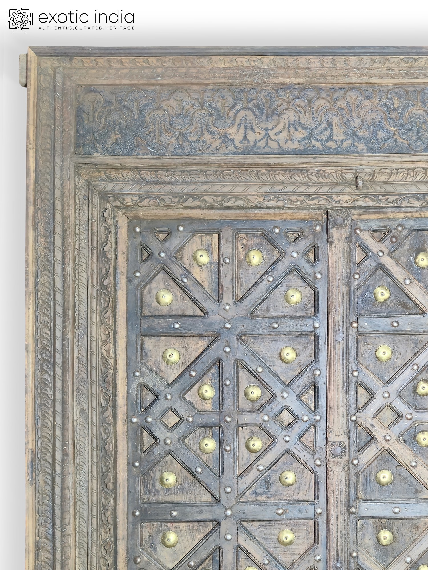 86" Large Traditional Flower Carved Teak wood Door With Knock