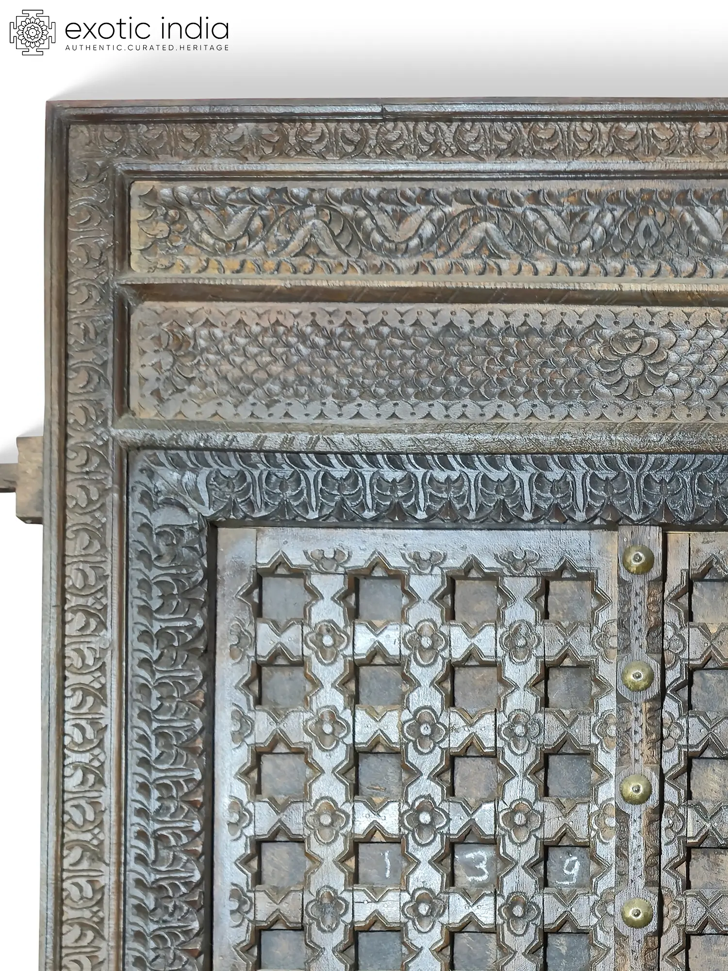 90" Large Wooden Jodhpur Front Door with Ventilation Frame | Vintage Indian Door