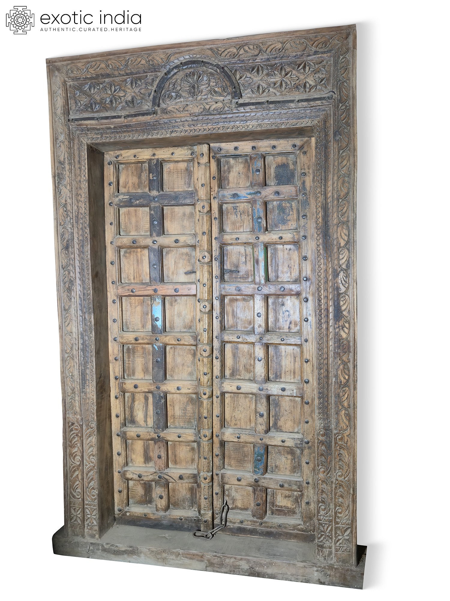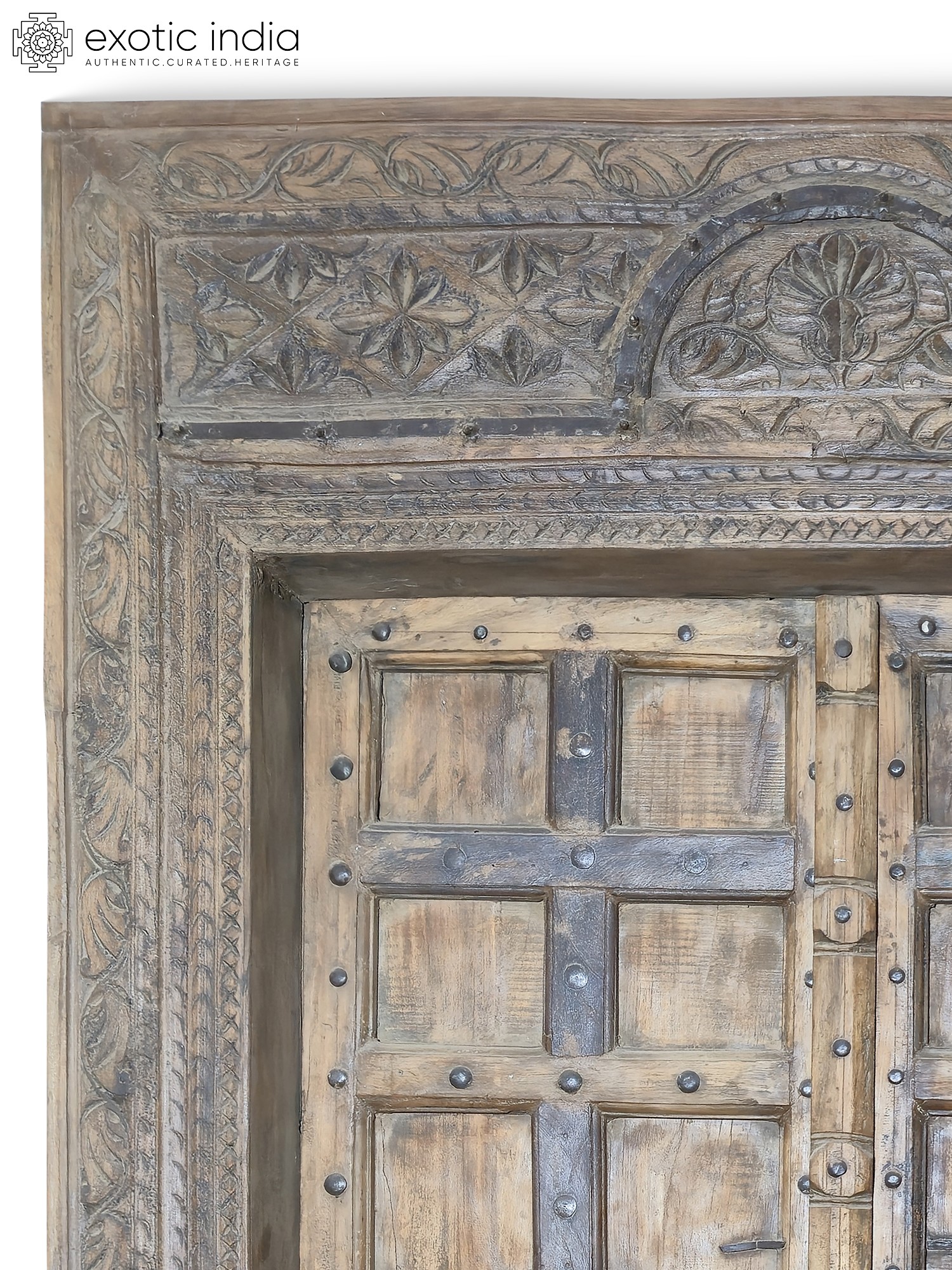 100'' Large Traditional Finely Designed Old Wooden Door | Vintage Doors From Rajsthan