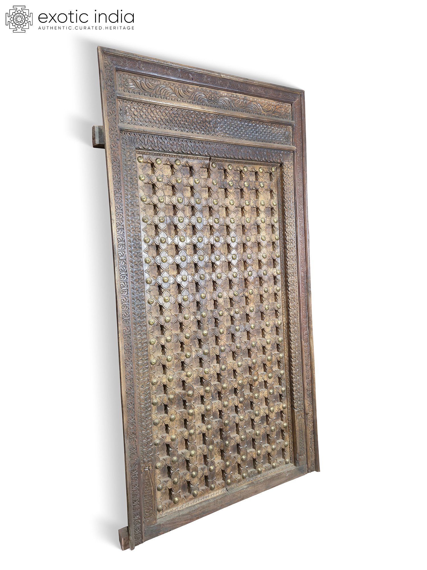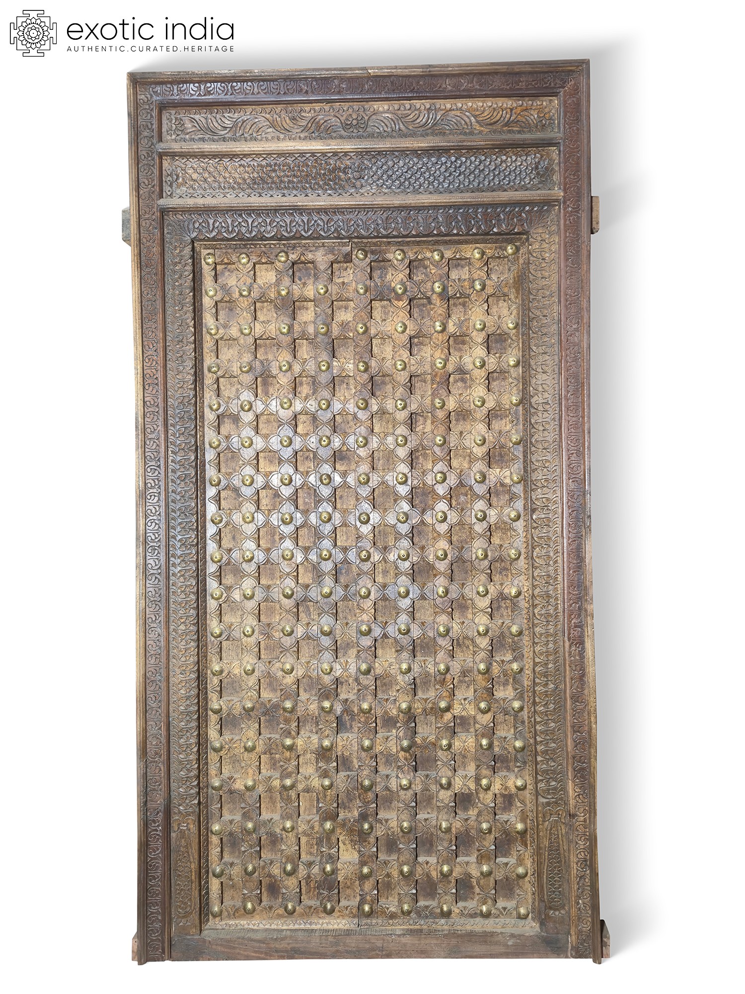 86" Large Wooden Jodhpur Designer Front Door with Frame | Vintage Indian Door