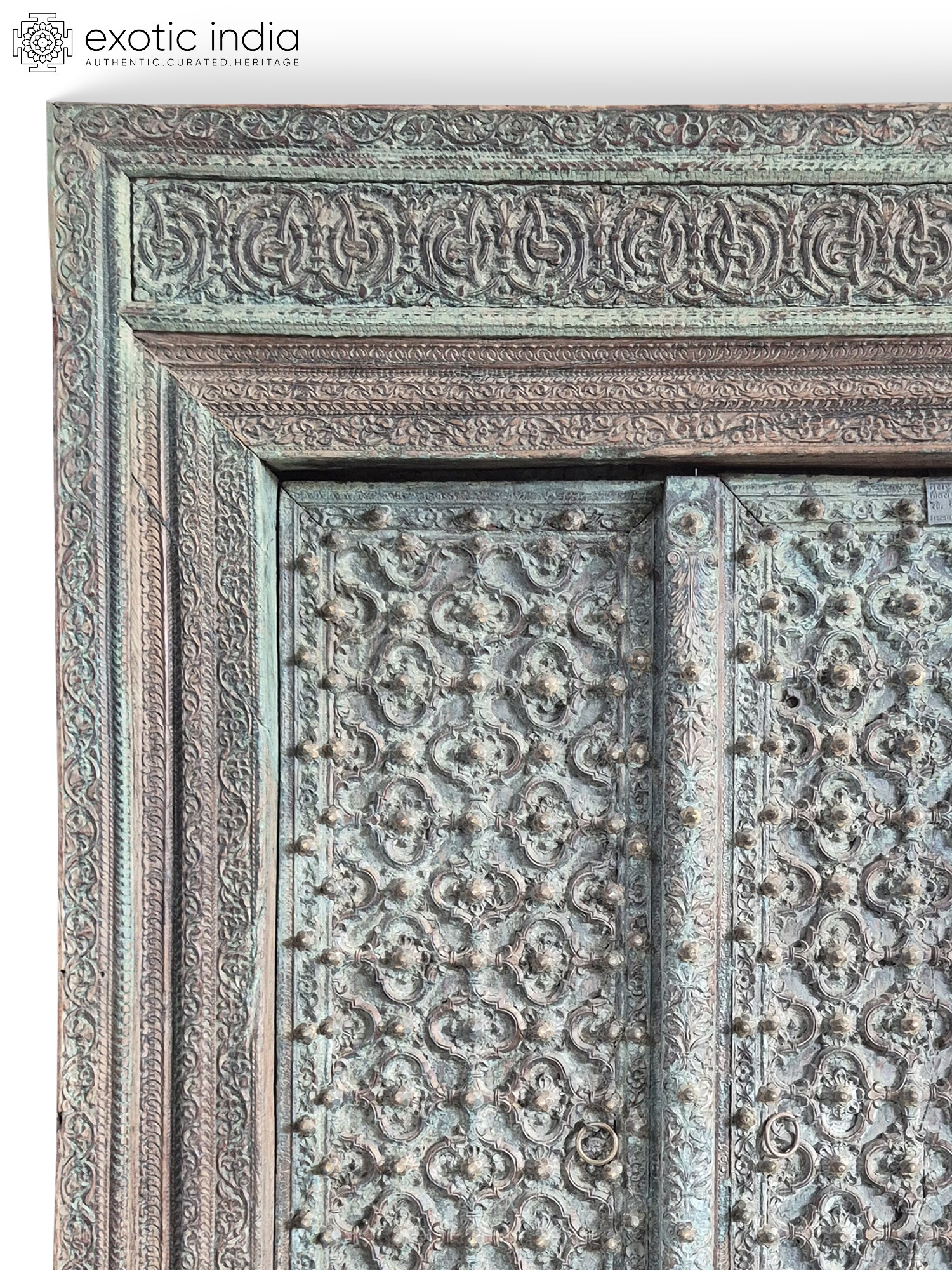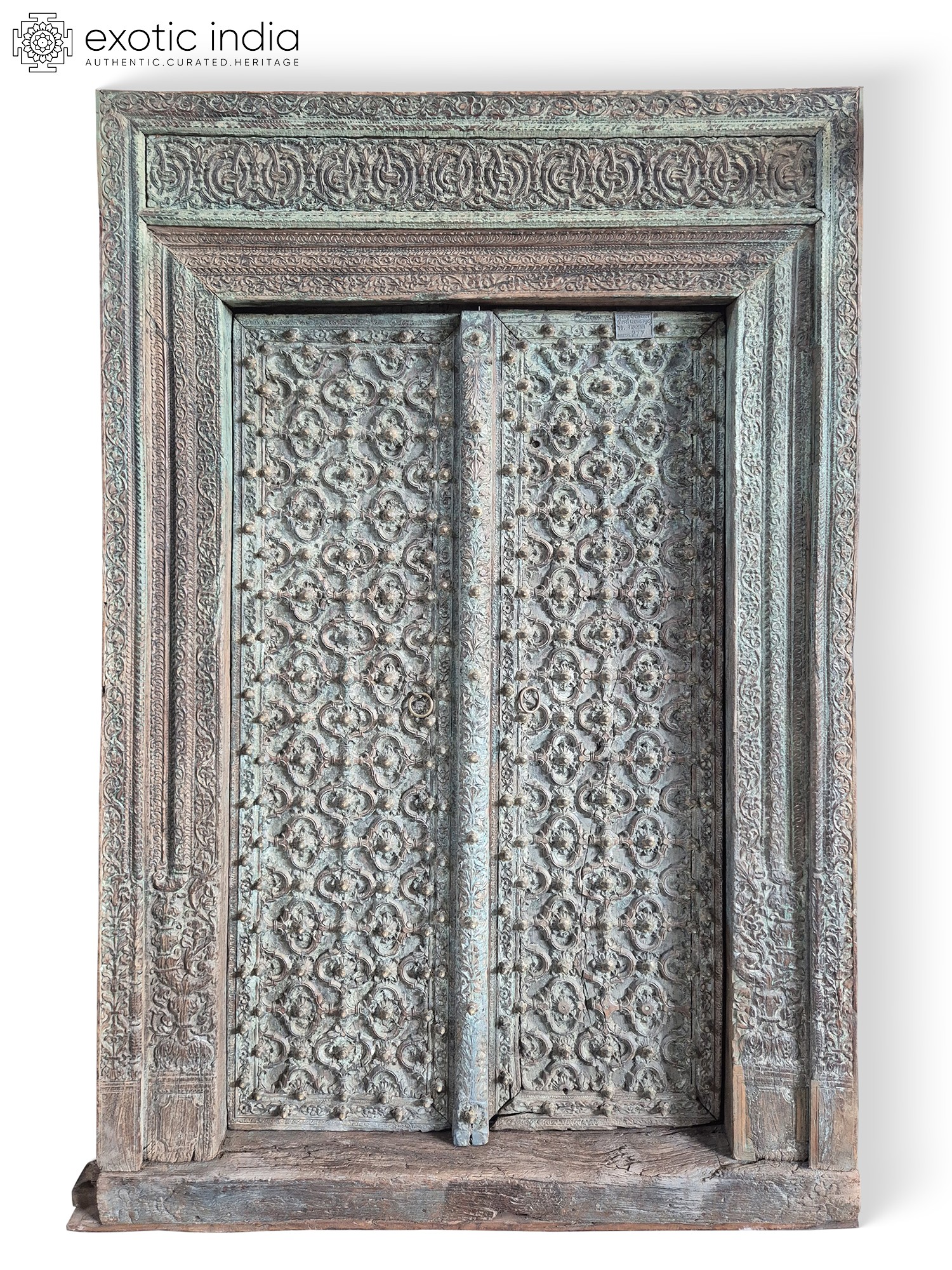 97" Vintage Style Indian Hand Carved Wood Door