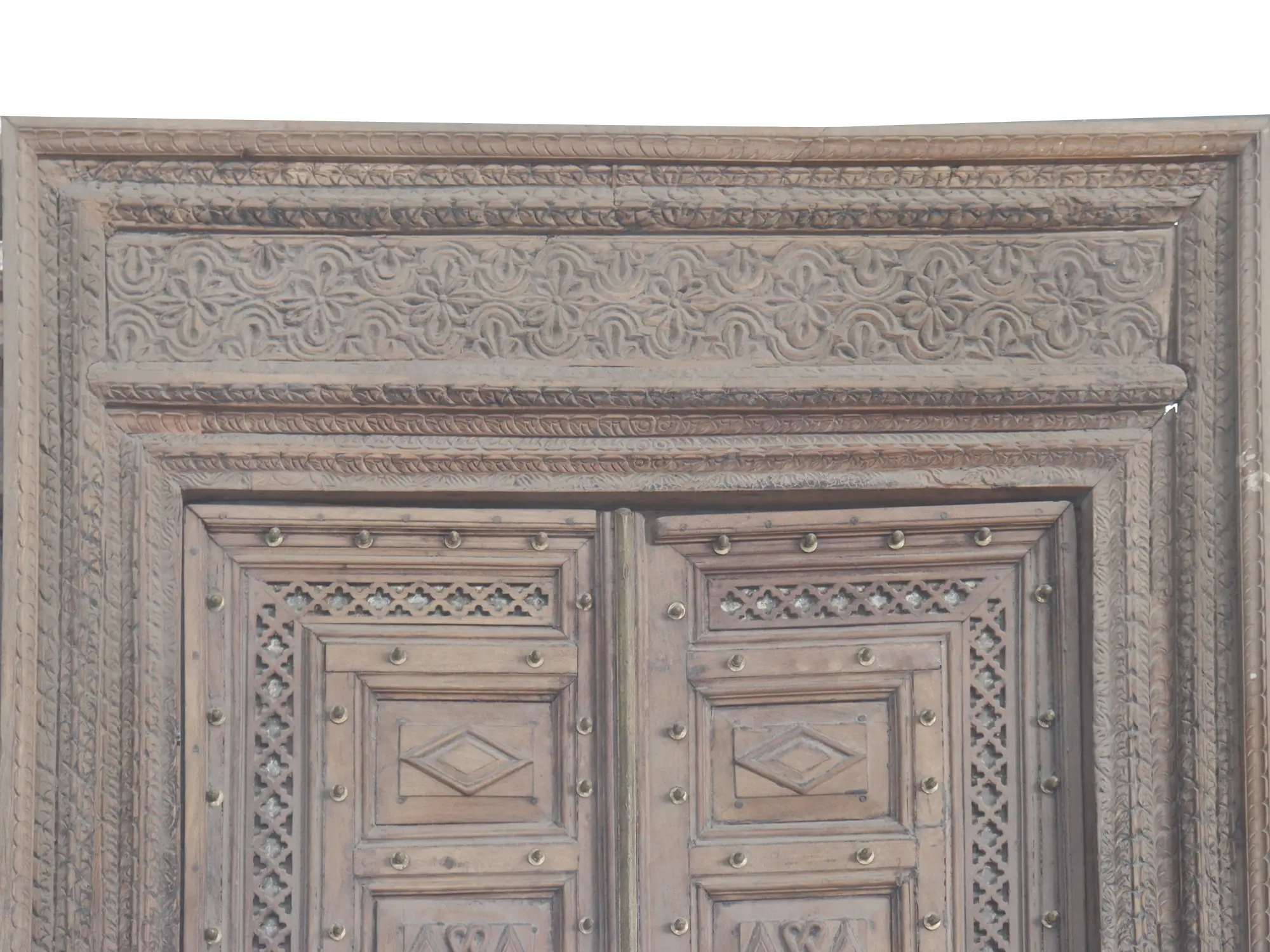 The magnificent 99" Large Wooden Designer Double Door with Frame, reminiscent of vintage Indian craftsmanship, showcases its ornate embellishments of geometrical patterns and vibrant rangoli designs. These antique doors hold deep symbolism, representing protection, prosperity, and the preservation of traditional values. With their intricate carvings and attention to detail, these doors add a touch of heritage and cultural richness to any space, creating a harmonious blend of aesthetic beauty and symbolic significance.