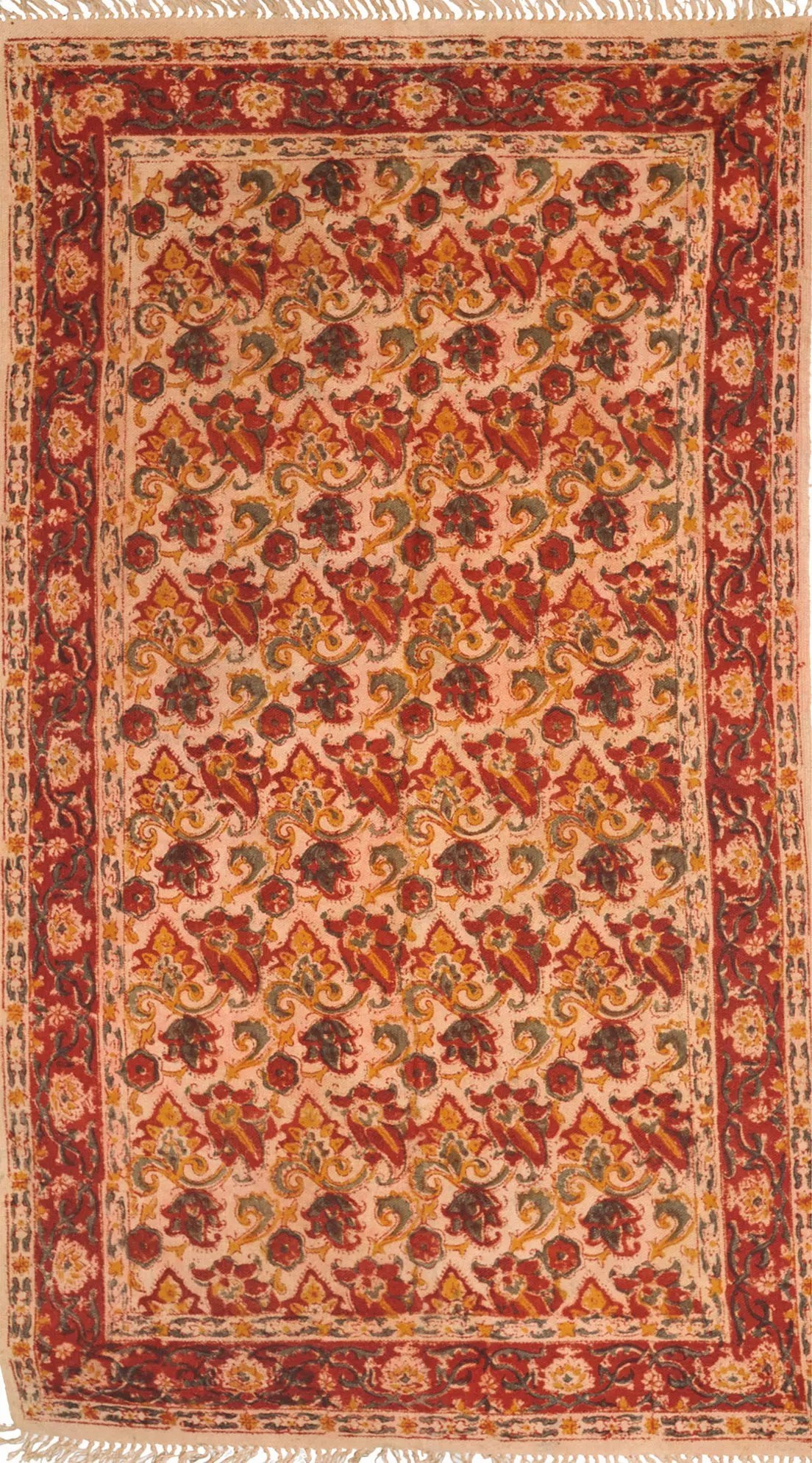Almond-Buff Kalamkari Dhurrie from Telangana with Printed Flowers