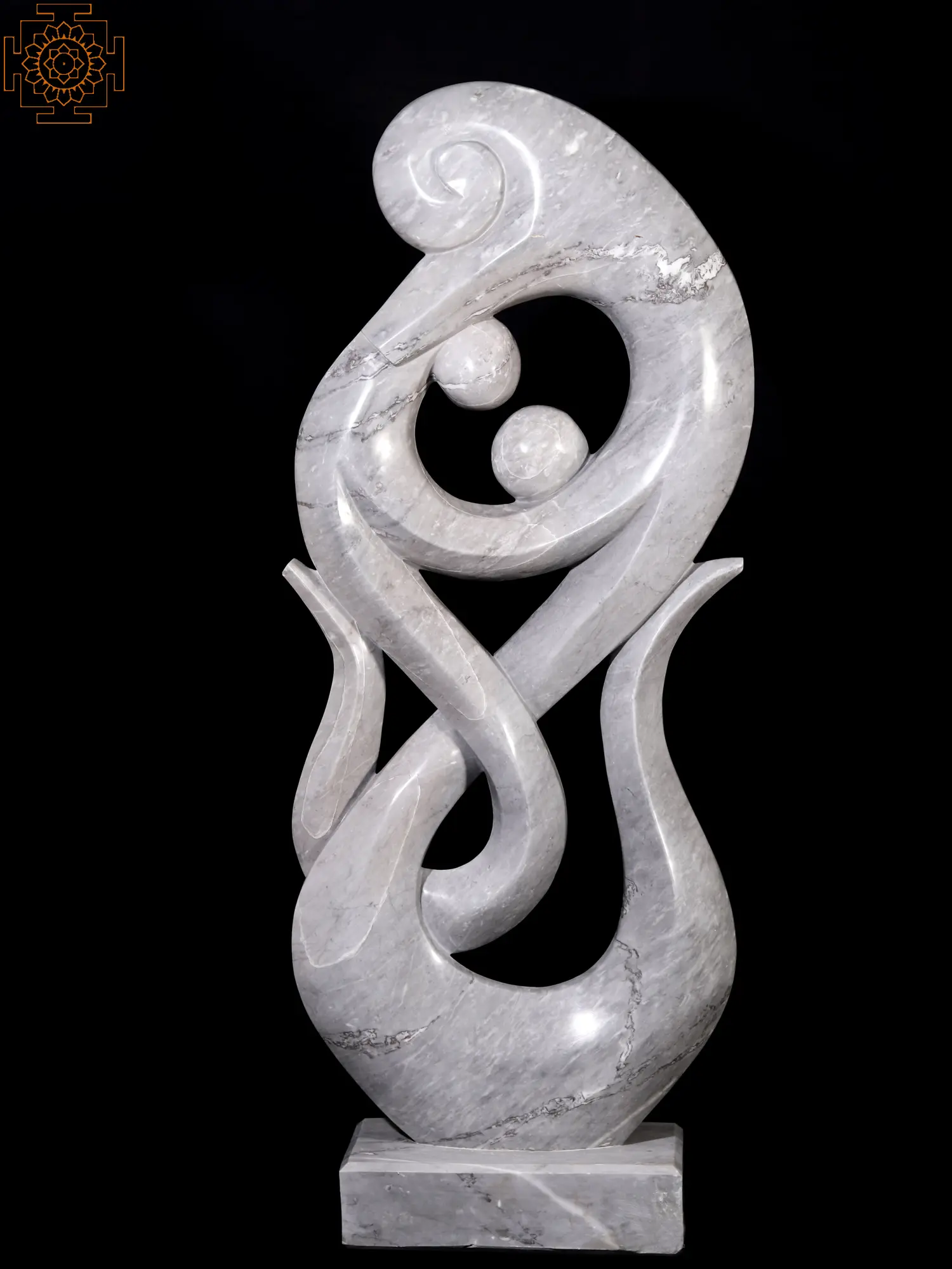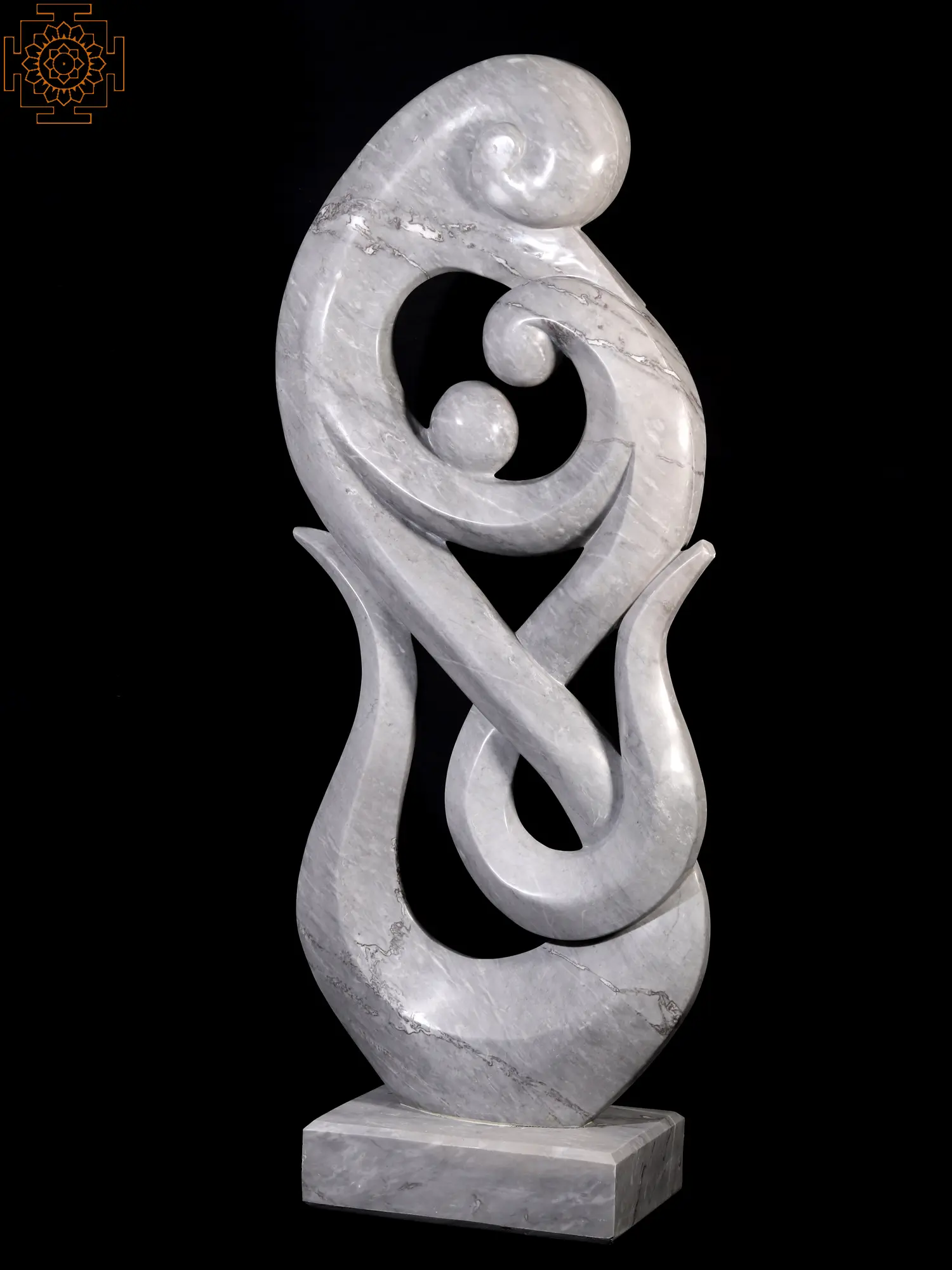 Ananda, meaning bliss, captures the essence of divine connection through the soft geometry of stone. Sculpted in luminous grey marble, this abstract composition portrays a parent and child entwined in a tender, eternal embrace- figures flowing into each other like an unbroken mantra of love.