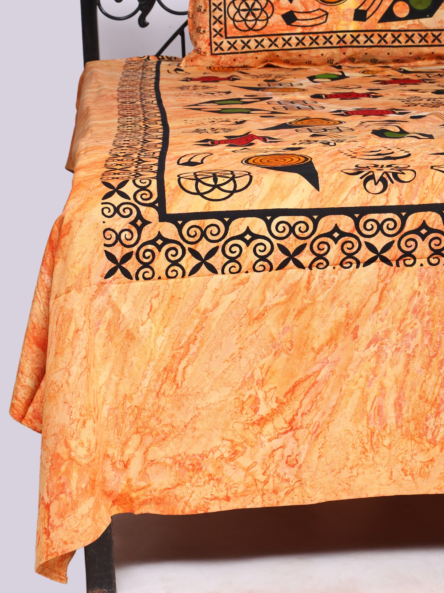 Sandstone Dandiya Folkdance Handblock Printed Cotton Queen Size Bedsheet With Two Pillow Cover