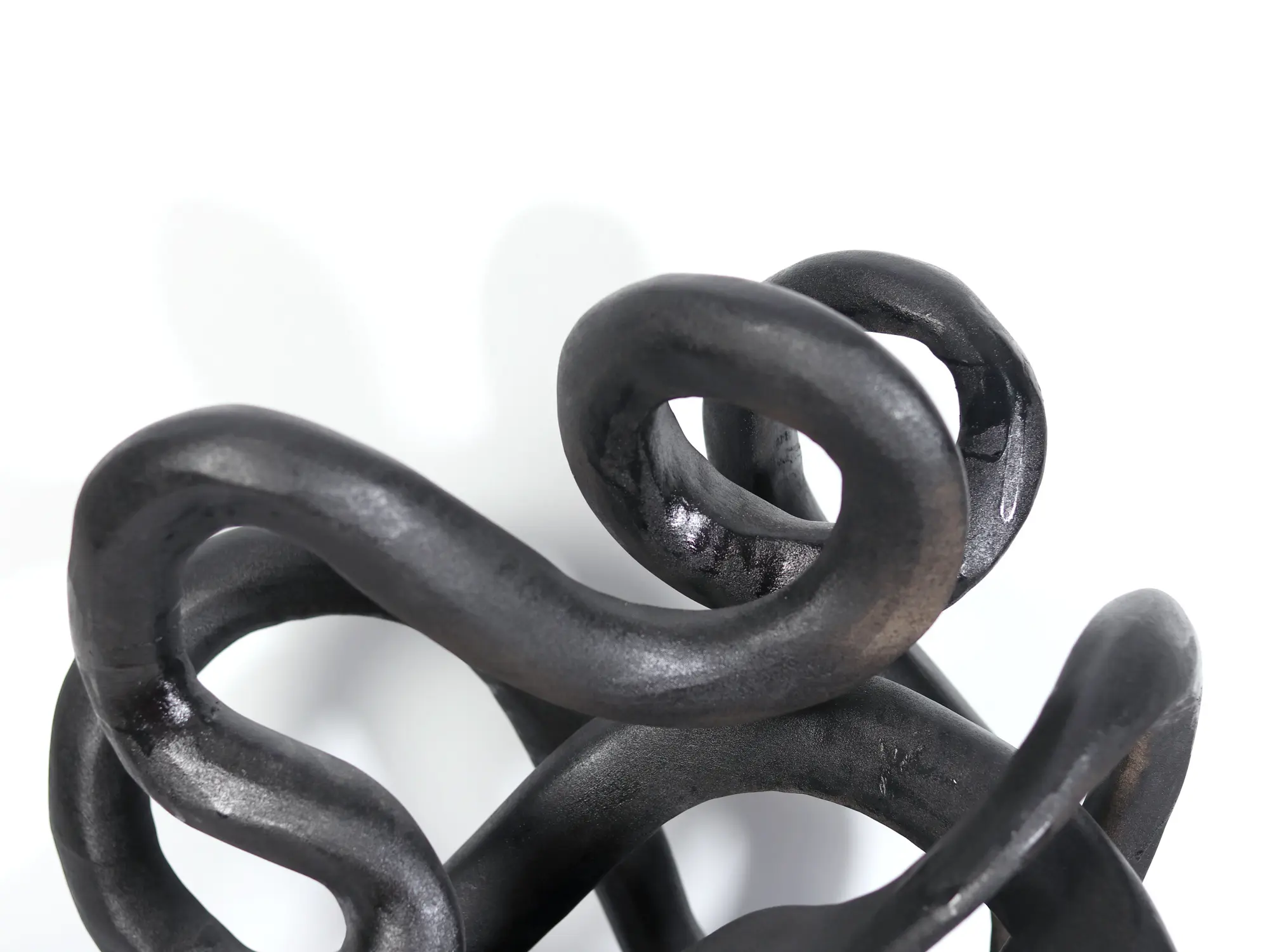 Crafted with a sensuous matte black finish, cut from a single stone, this contemporary sculpture weaves together serpentine loops and energetic bends, evoking the chaos and beauty of the unplanned. A striking presence on any console, pedestal, or gallery corner, it blurs the lines between design and emotion.