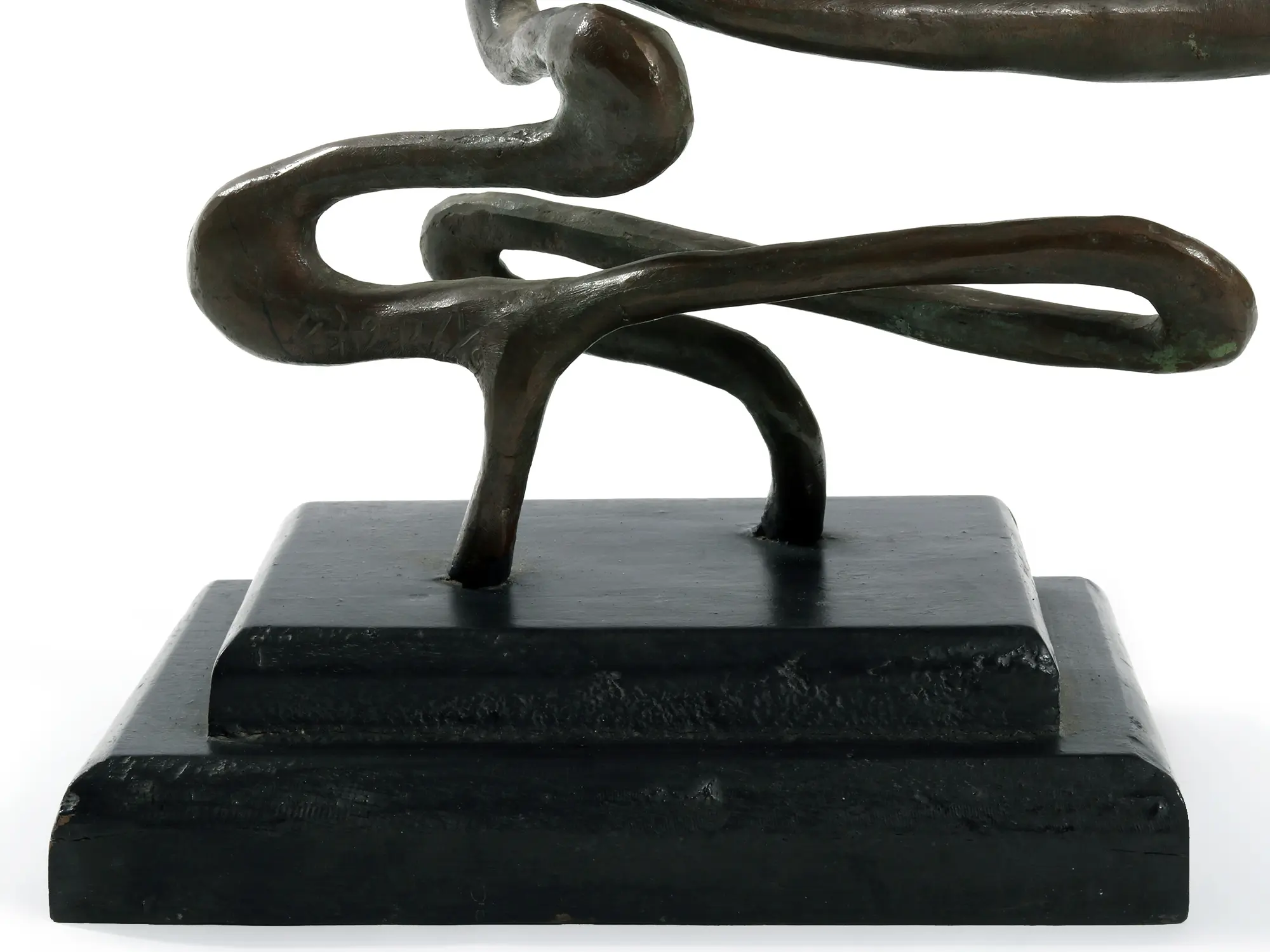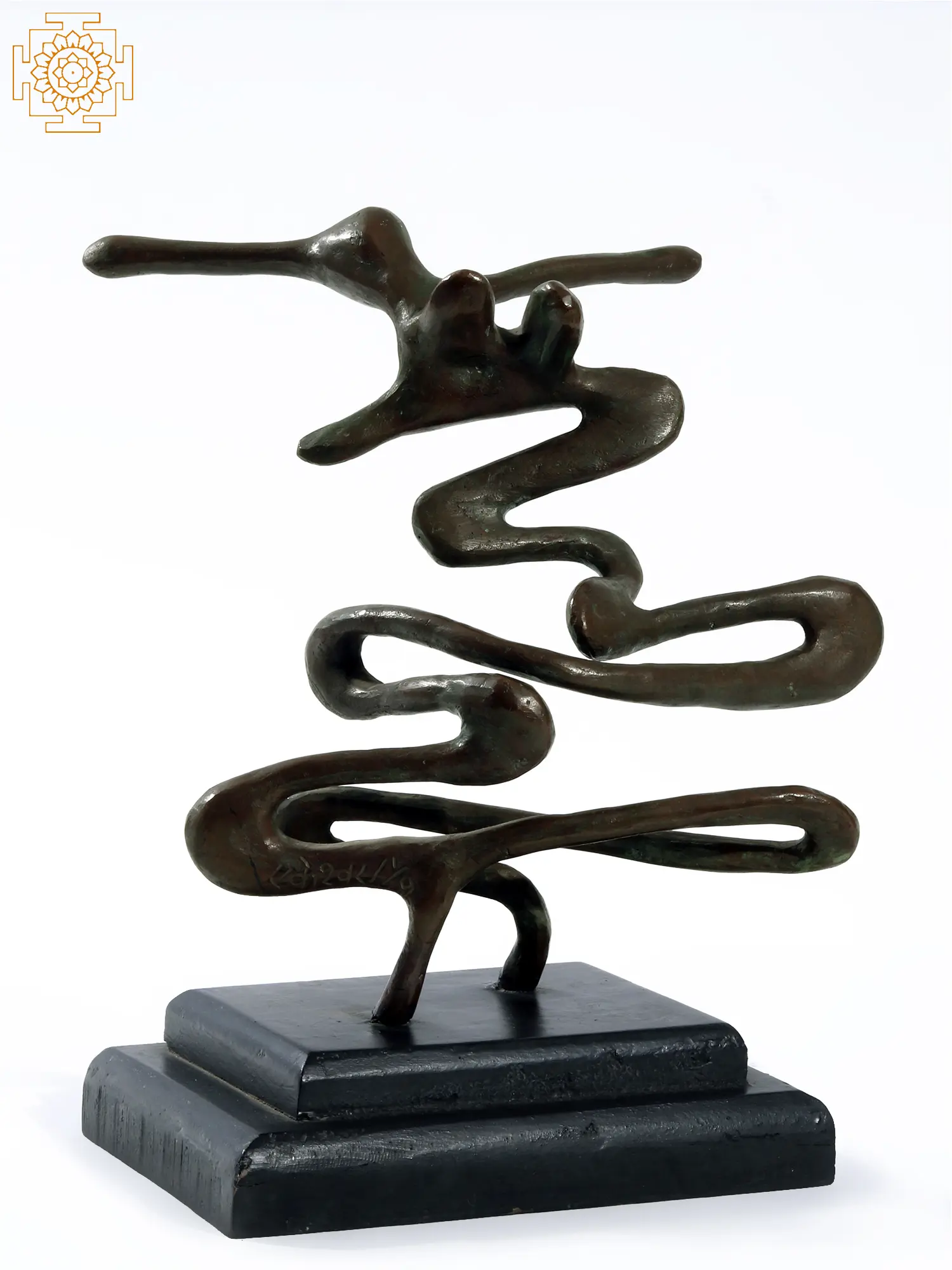 Fluid yet grounded, this contemporary bronze sculpture flows like a ribbon jerked forward by a trained magician. With sinuous, undulating lines that twist and turn in rhythmic motion, the piece captures a state of becoming- movement frozen in time. At once calligraphic and organic, it evokes wind, water, and the raw pulse of creativity.