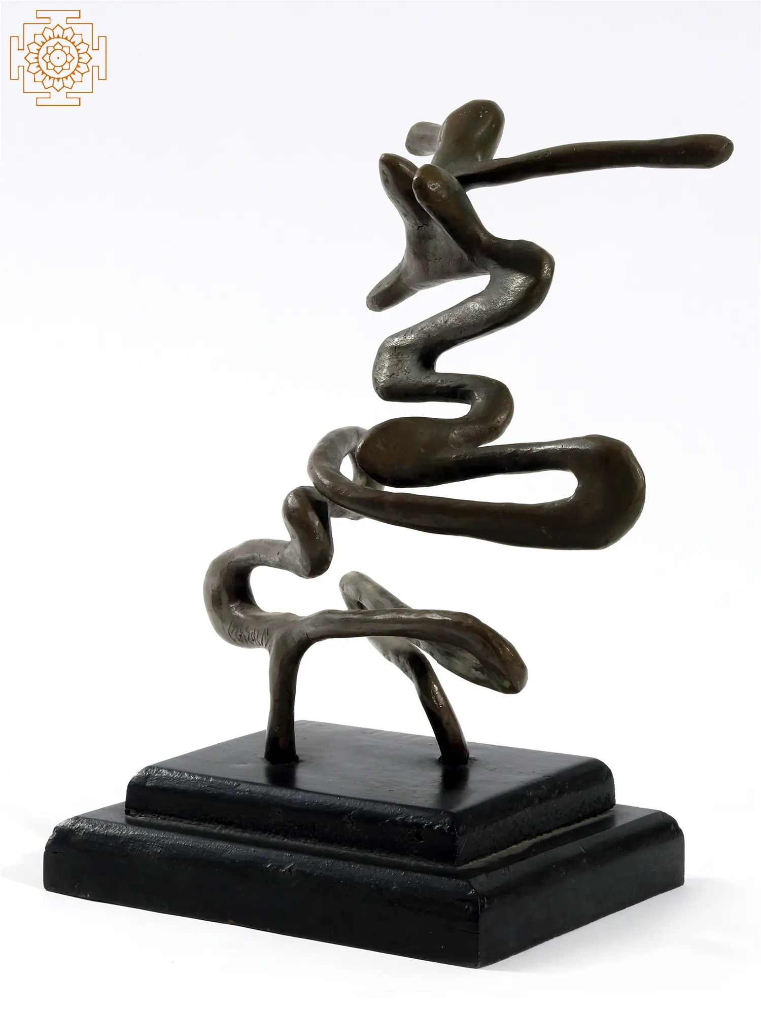 Resting on a solid, tiered base, the sculpture stands as a dynamic symbol of balance between chaos and control, freedom and form. Crafted through the lost-wax technique, its dark, rich patina adds depth to its ever-changing silhouettes from every angle.