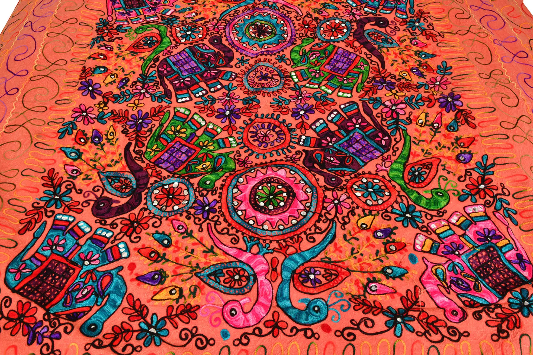 Gujarati Bedcover with Applique Elephant and All-Over Embroidery with Sequins Work