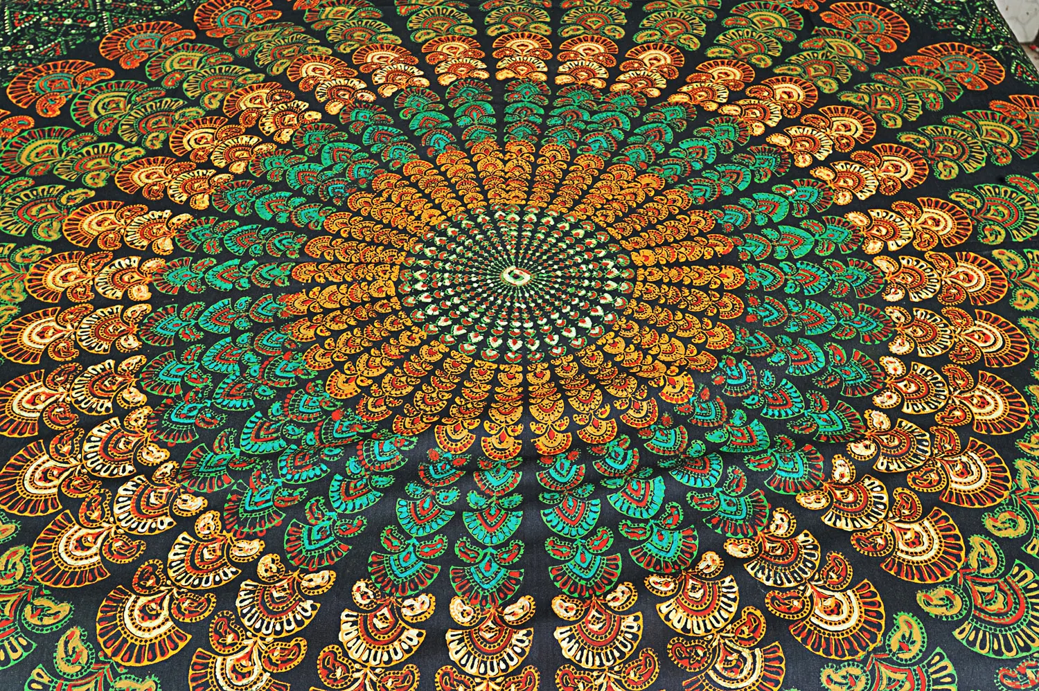 In the heart of Pilkhuwa's artistic heritage, the "Bedspread from Pilkhuwa with Printed Giant Mandala" emerges as a true masterpiece. Adorned with a grand mandala print, a timeless symbol of unity and harmony, it gracefully reflects the rich tradition of the region. As it graces your bed, it transforms your bedroom into a serene sanctuary, adding a touch of cultural elegance and warmth. This bedspread is more than just fabric, it's a living tribute to the artistic legacy of Pilkhuwa, offering both comfort and a visual feast for the eyes.