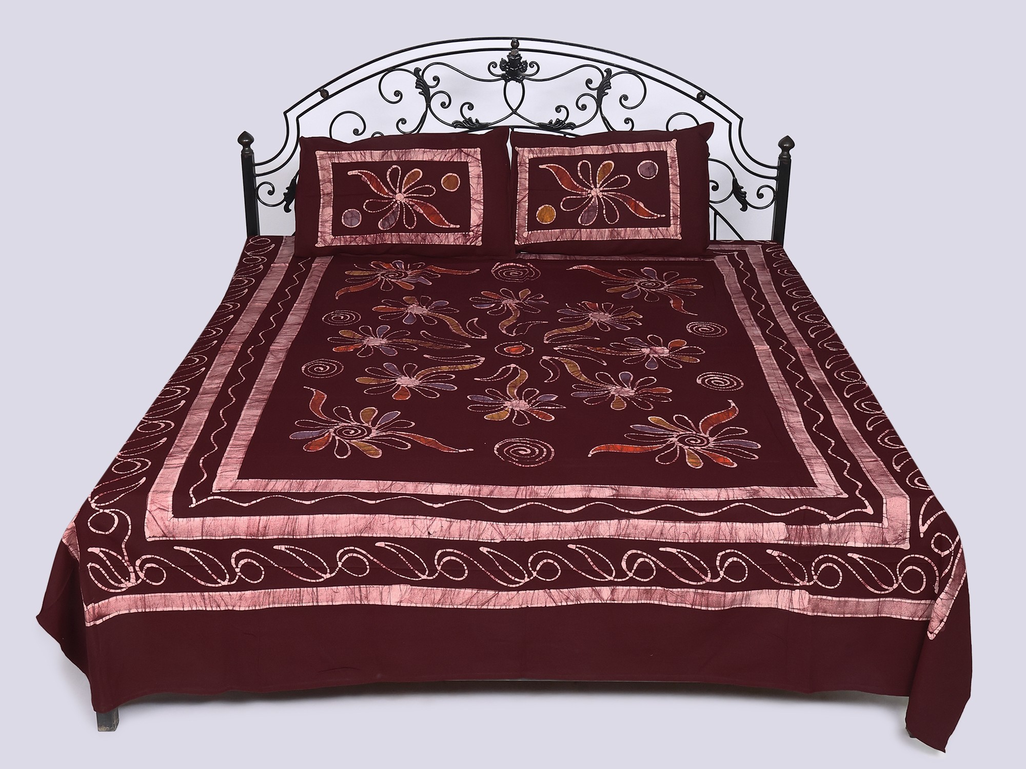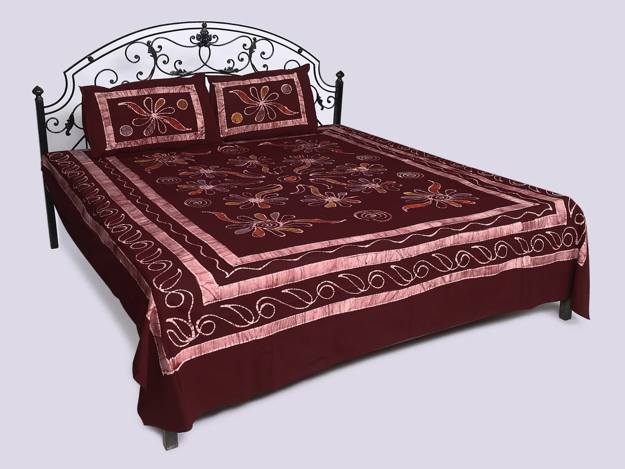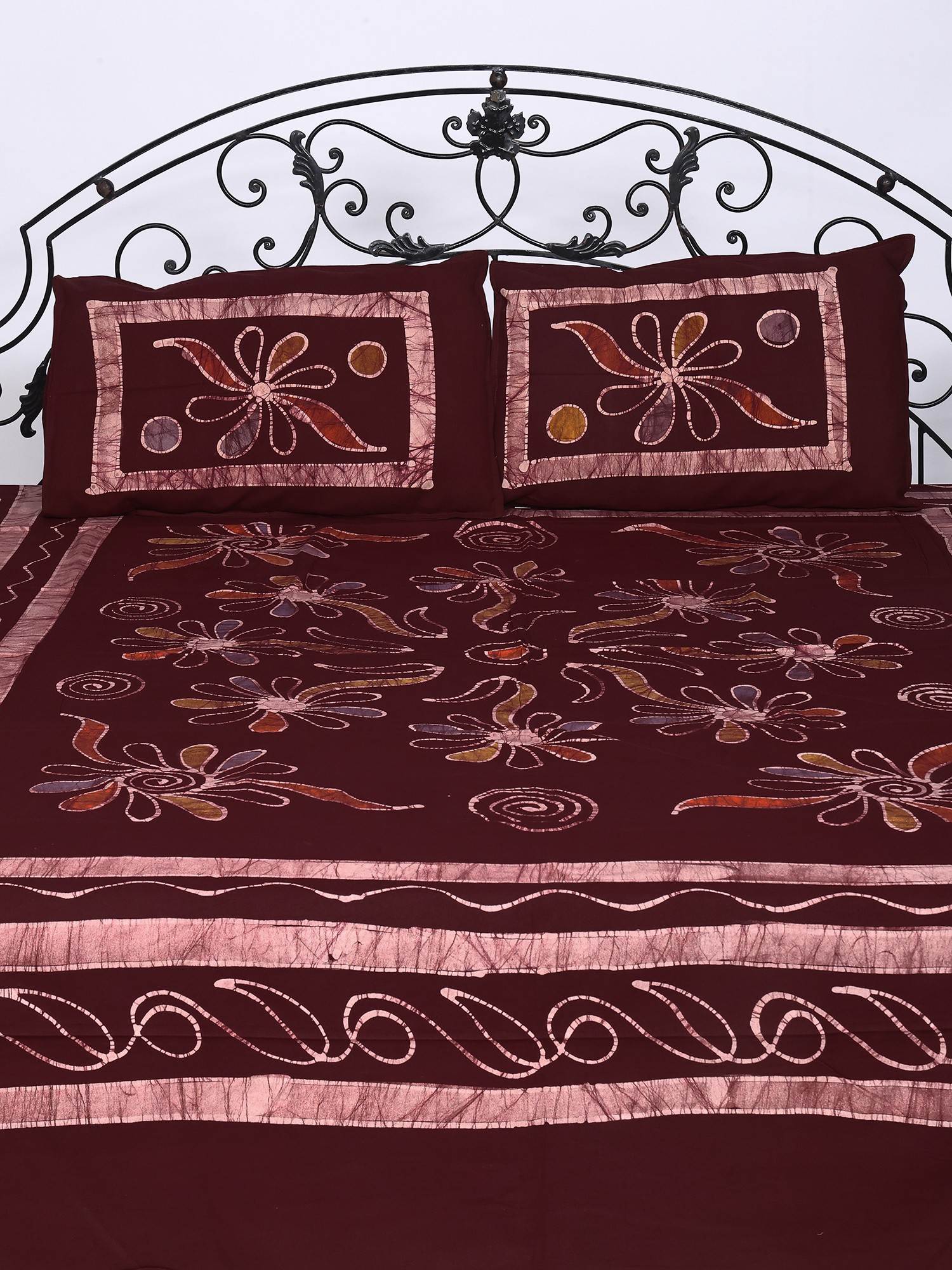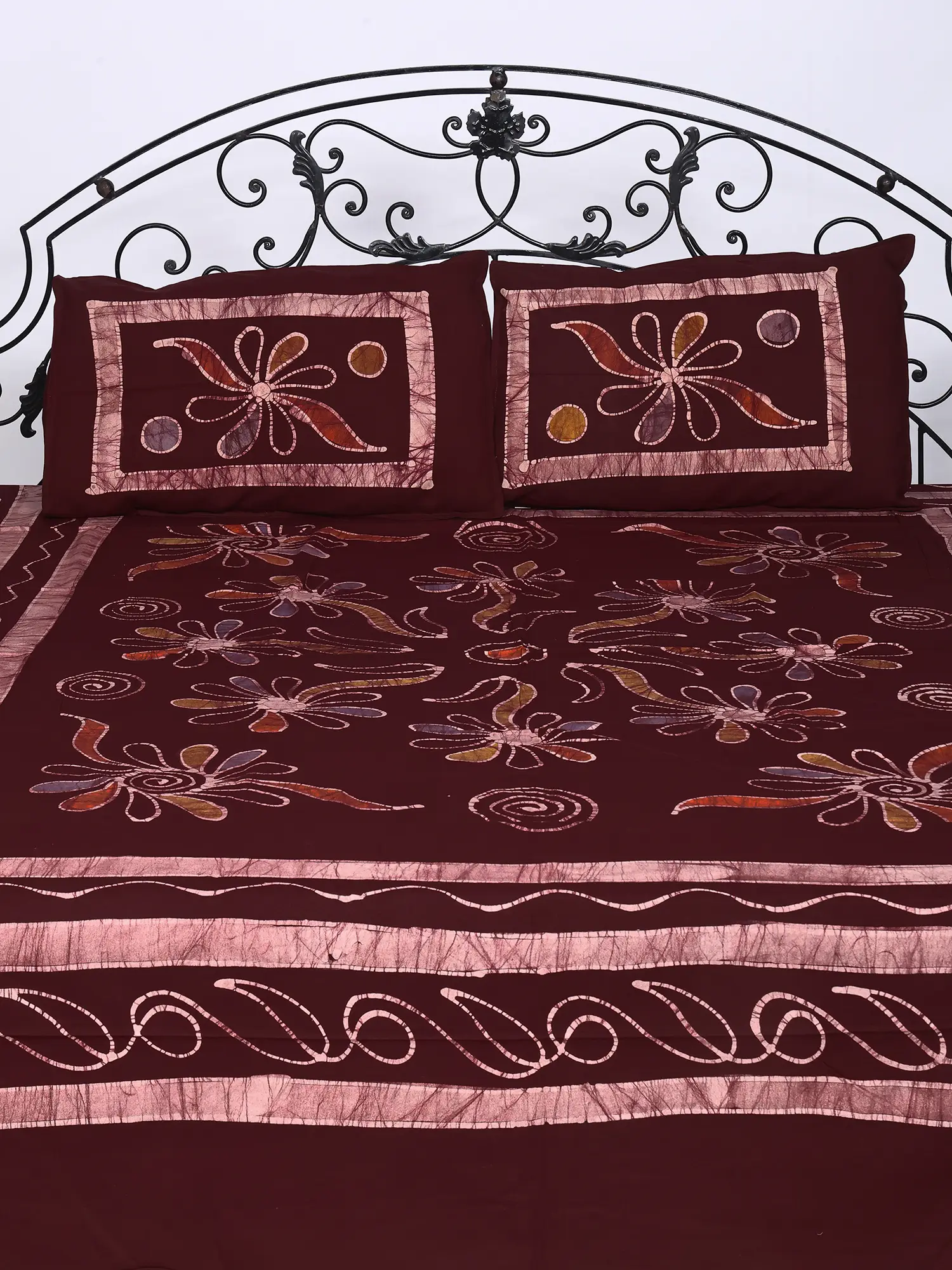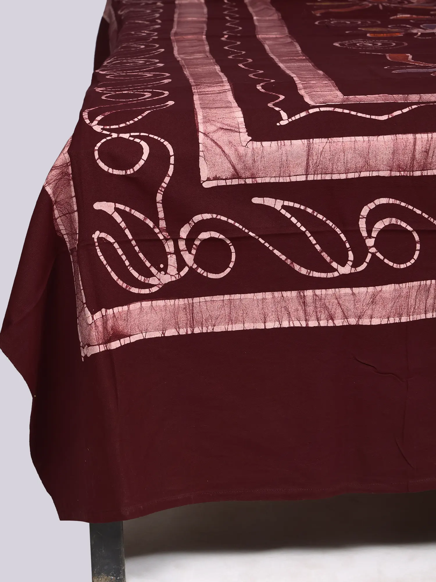 Bitter-Chocolate Pure Cotton Batin Printed Queen Size Bedspread with Pillow Cases
