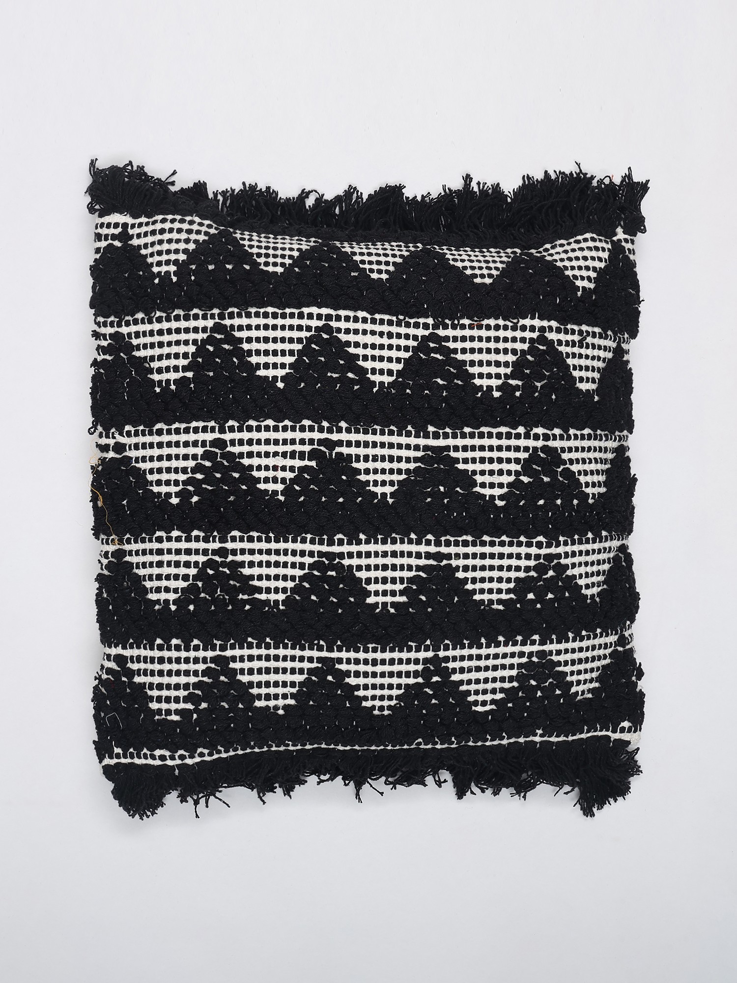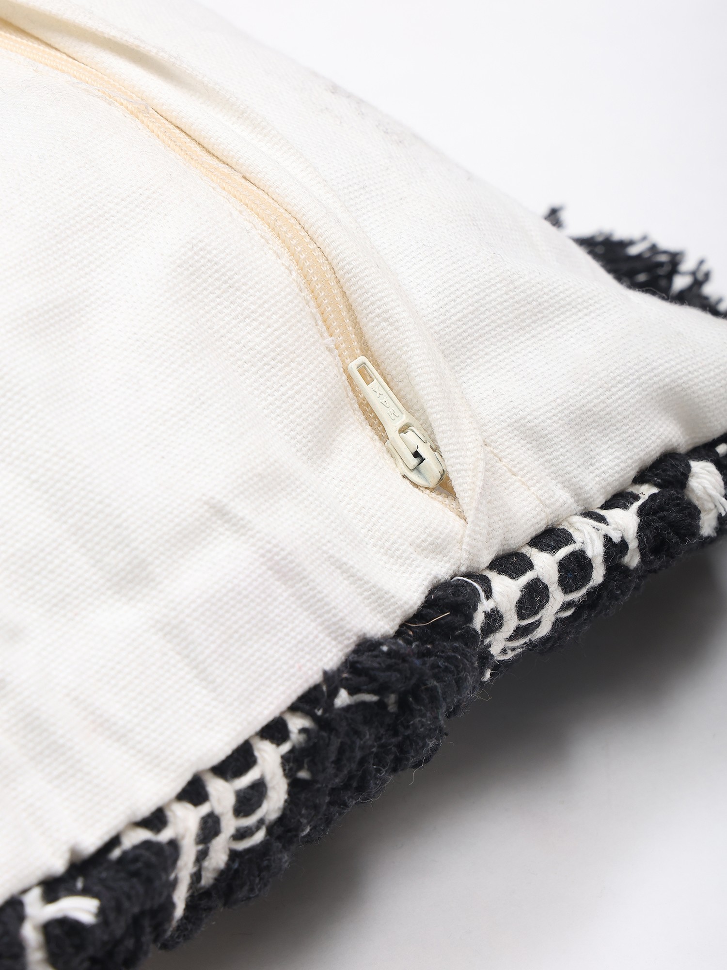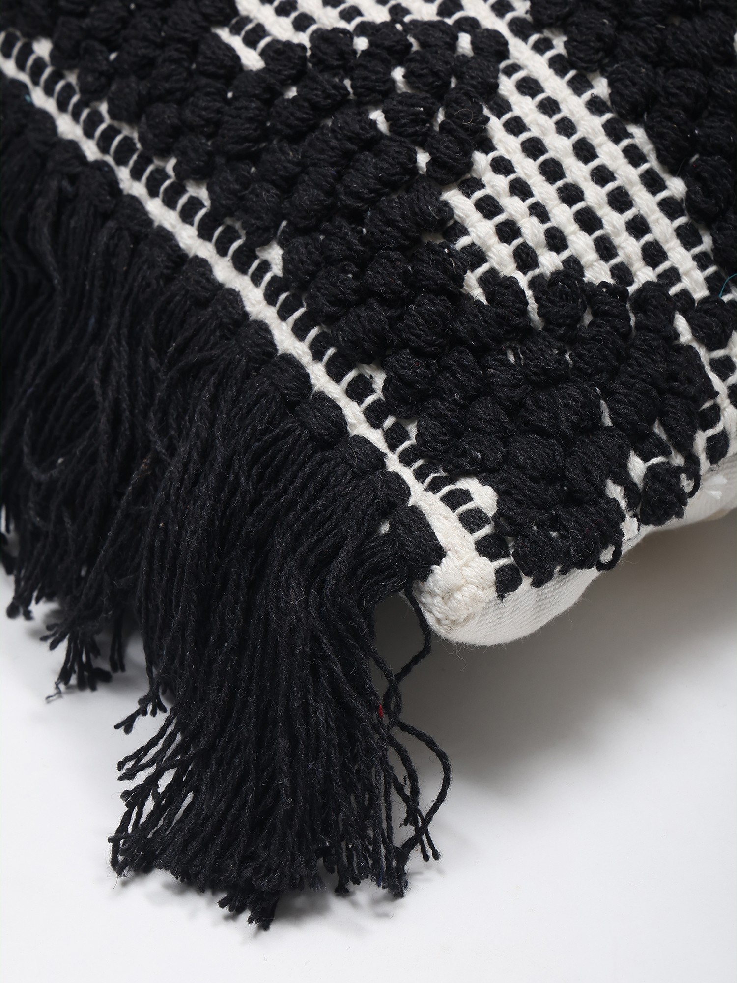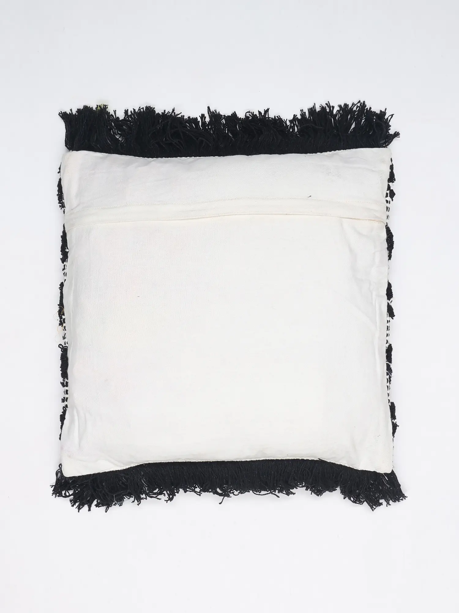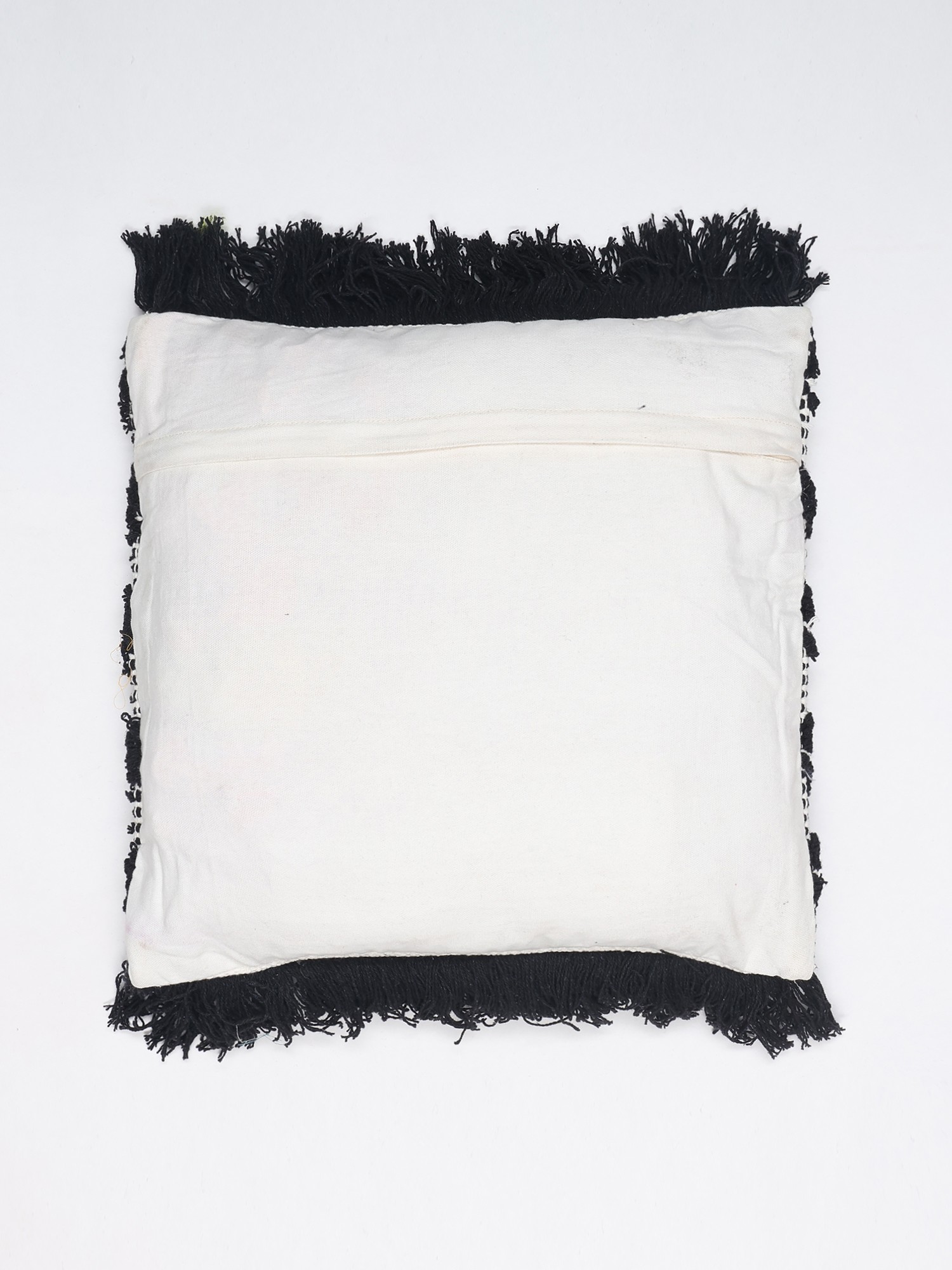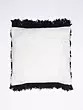 Black and White Thread Embroidered Cushion Cover with Fringes