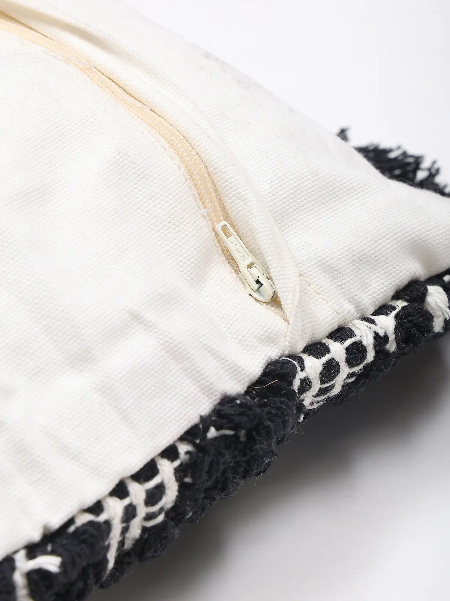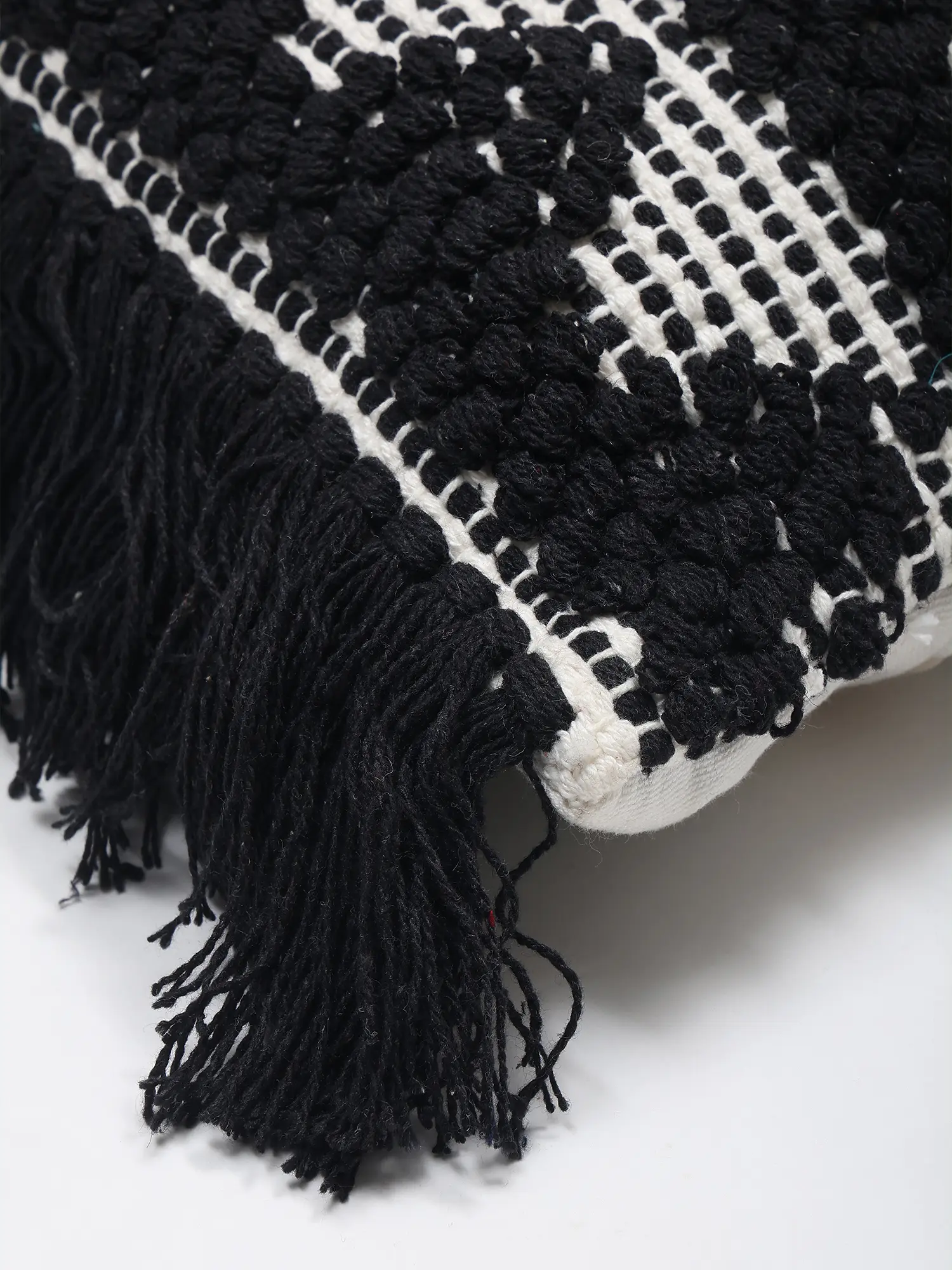The art of textile embellishment has a rich history, and this piece carries that legacy forward with a modern sensibility. The bold contrast and tactile elements echo traditional weaving techniques, reinterpreted for contemporary interiors. You'll feel a connection to timeless design principles that transcend fleeting trends, making this a truly meaningful addition to your home.