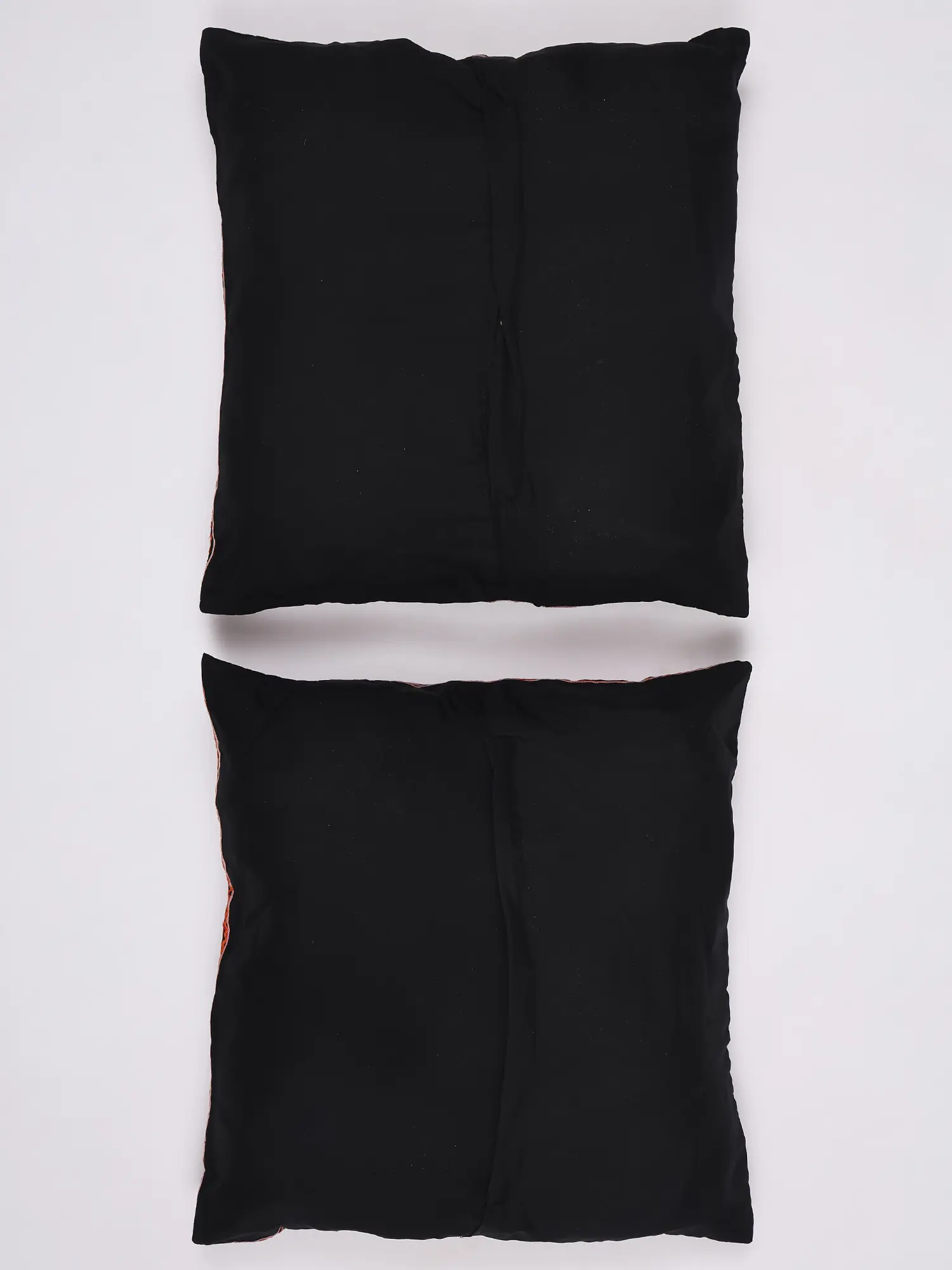 The art silk fabric offers a subtle sheen that beautifully complements the intricate floral embroidery. You'll appreciate the detailed rendering of blossoms and swirling vines in a palette of vivid hues, creating a captivating contrast against the deep black background. The generous 17-inch by 17-inch dimensions ensure they will grace any standard cushion, providing an immediate uplift to your décor.
